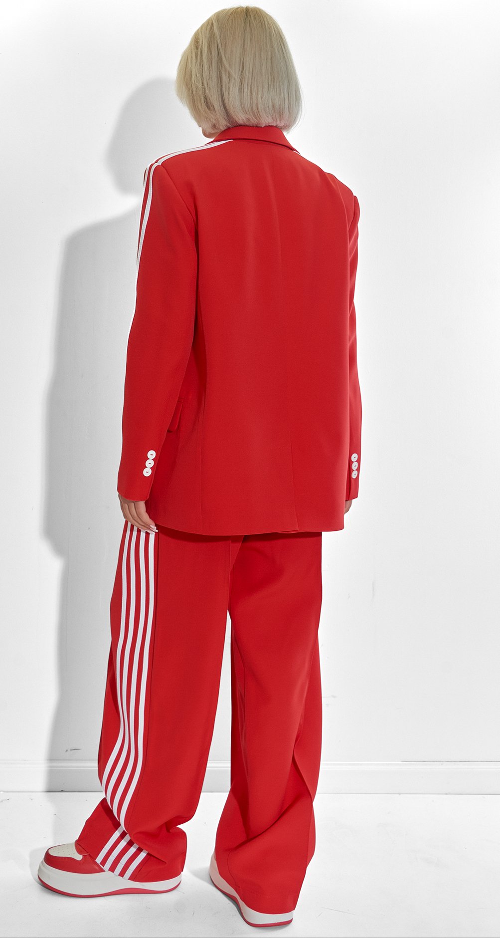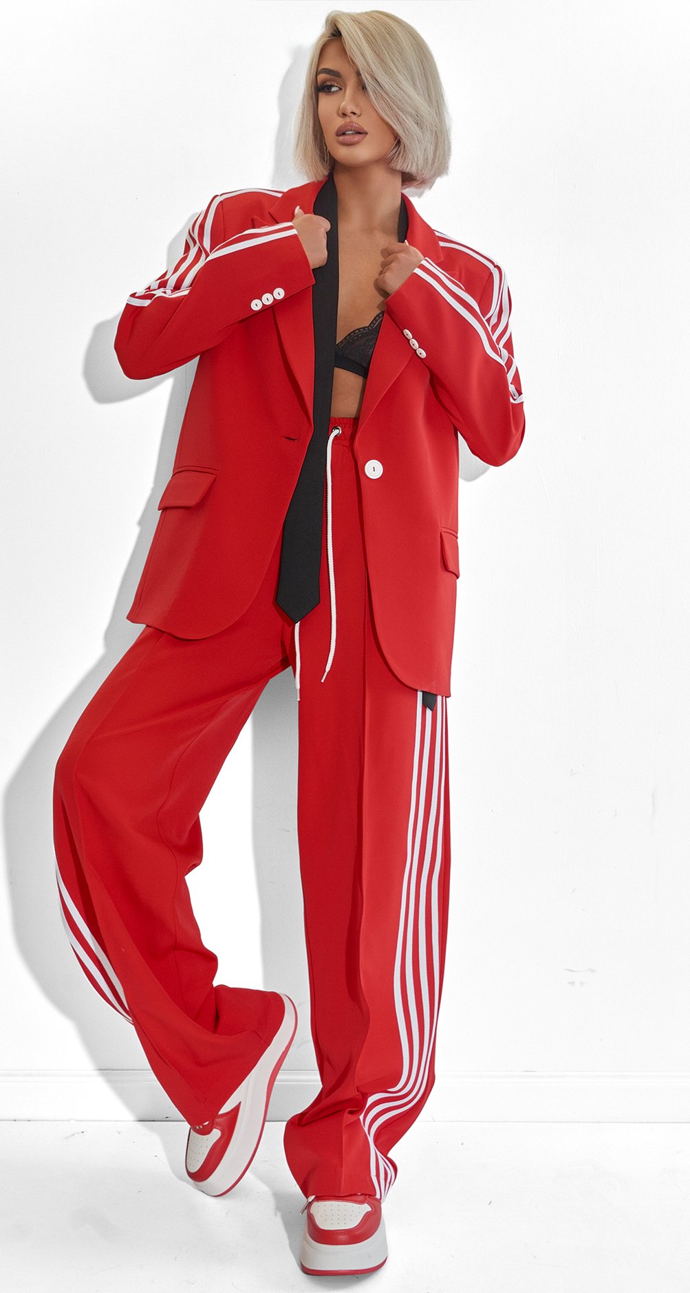 Элементы Sport-Luxe: Трендовые лампасы по бокам добавляют образу дерзости и вертикального акцента, который делает фигуру еще стройнее.