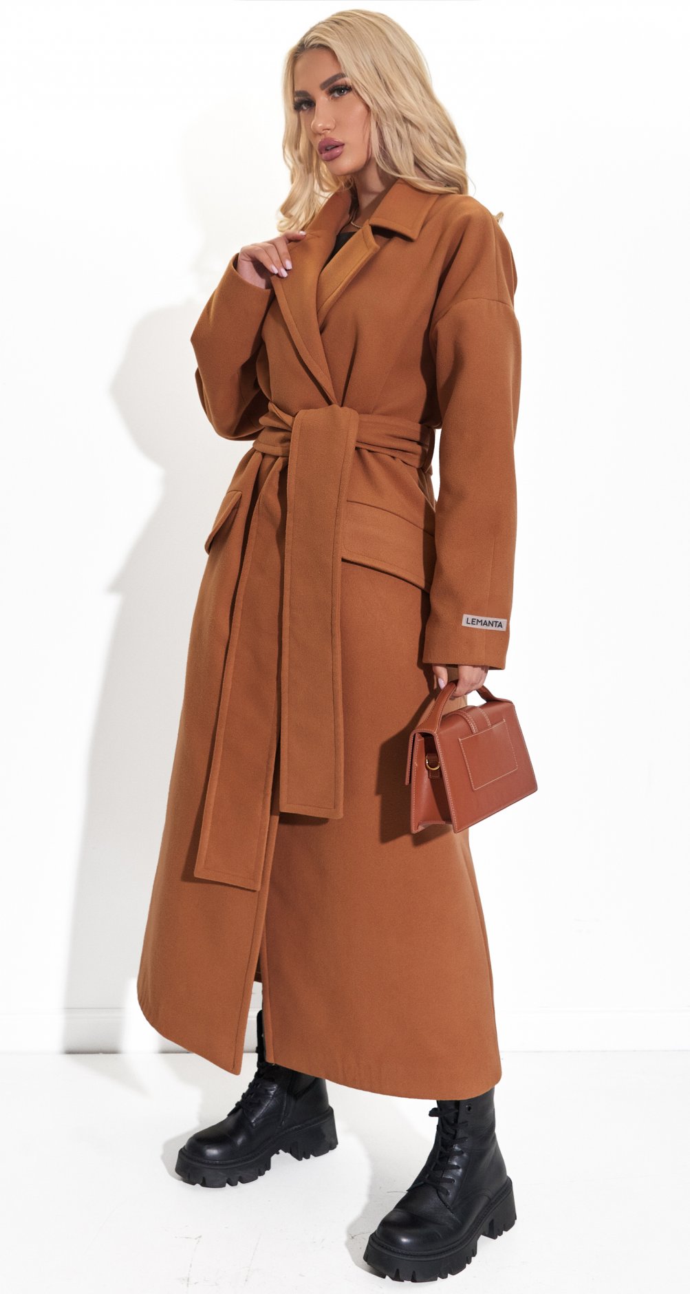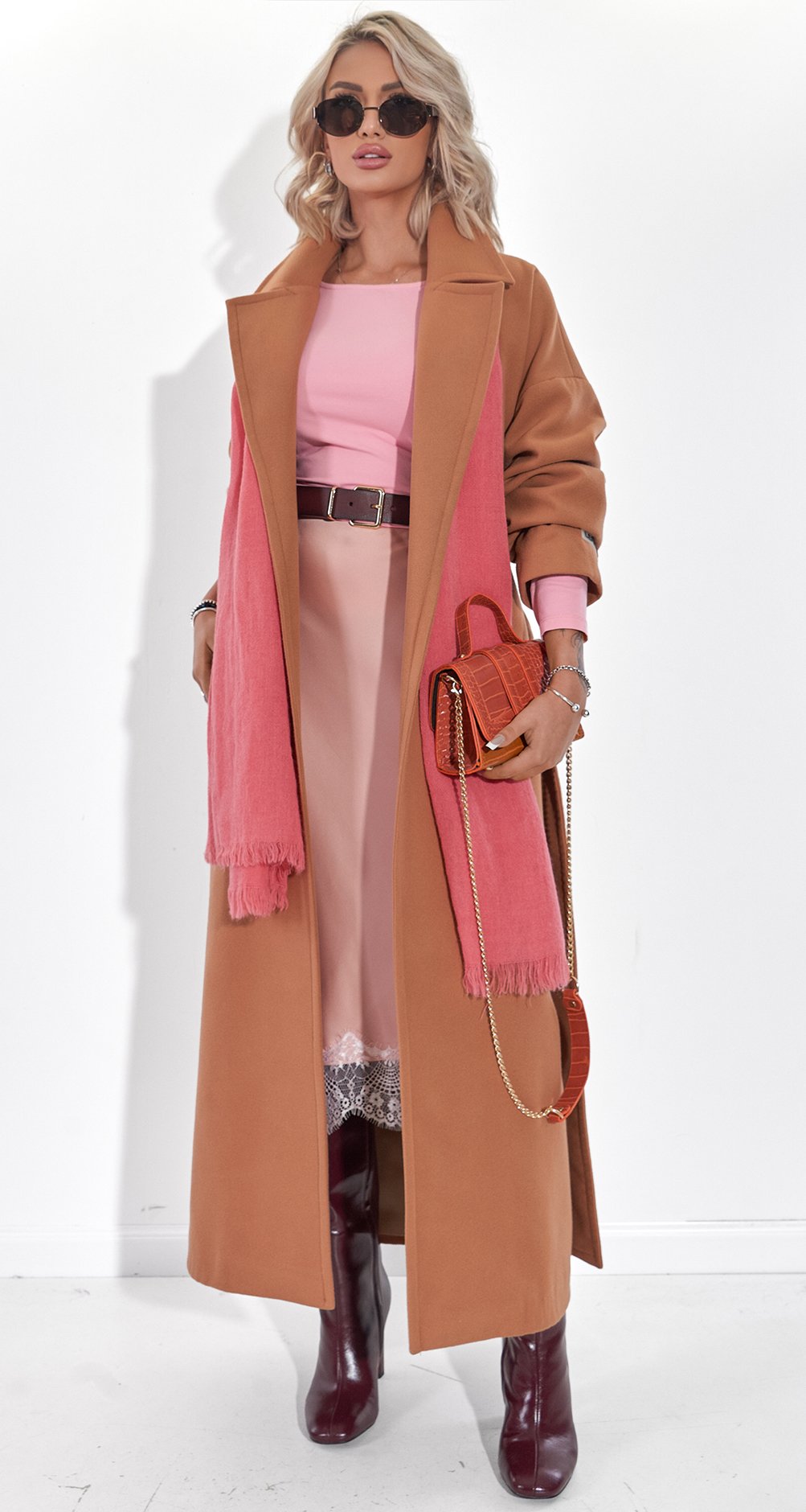 С эффектным широким поясом с вставкой из коричневой эко-кожи!