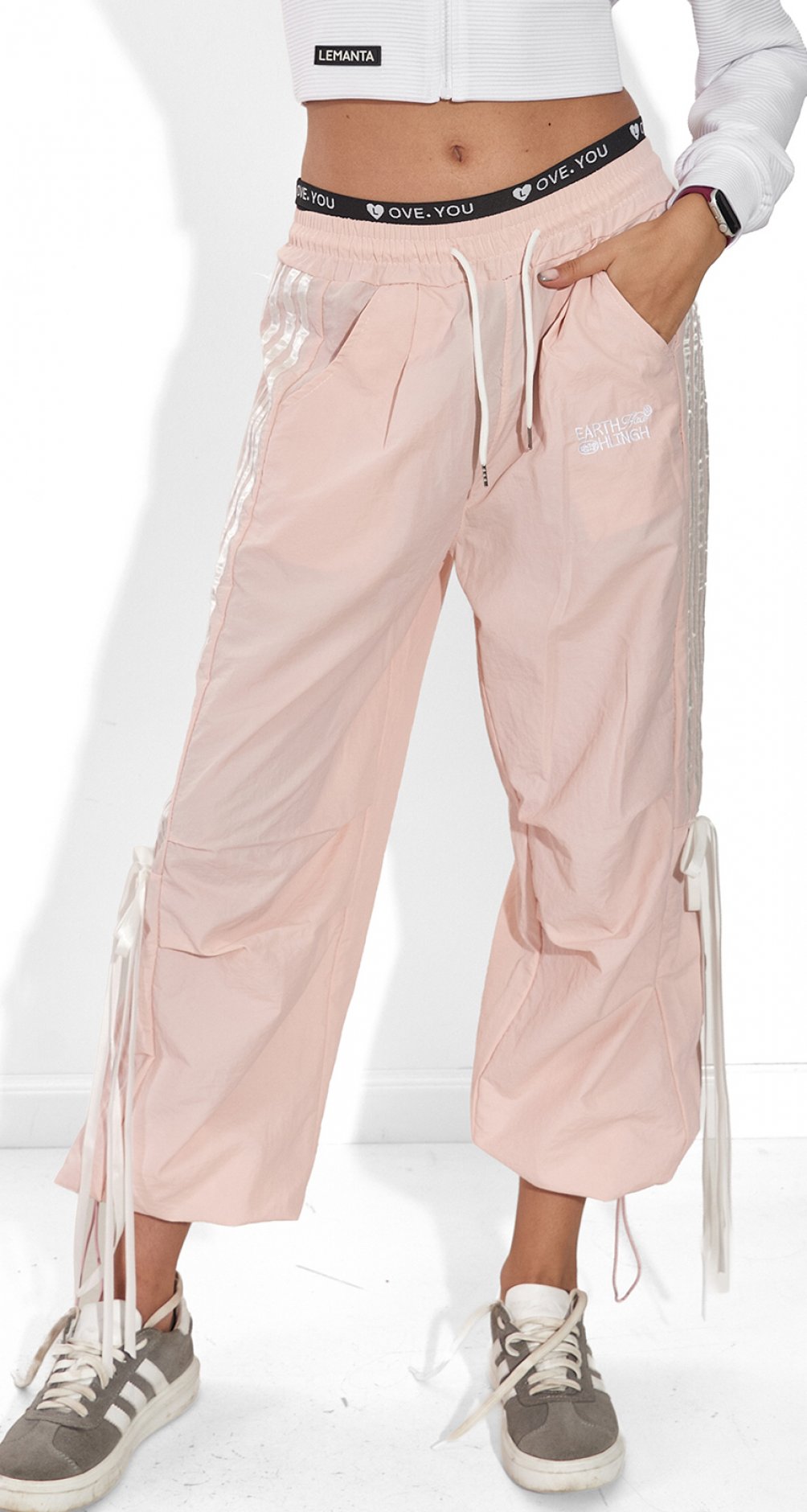 Эффект джоггеров: затяни резинку внизу — и ты получаешь динамичный, спортивный силуэт, который акцентирует внимание на щиколотке и твоих любимых кроссовках.