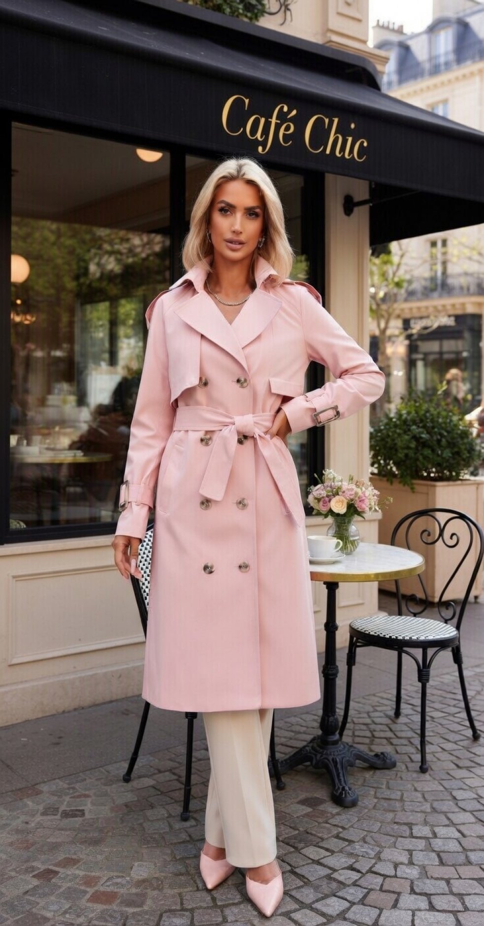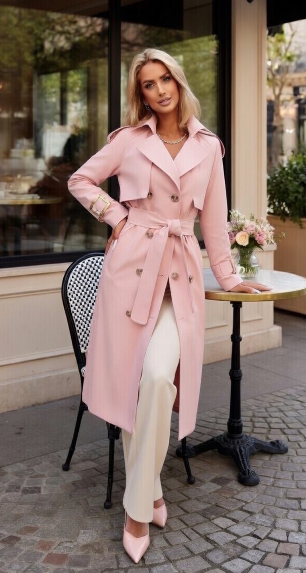 Этот тренч — идеальное воплощение весенней романтики и классического стиля. Нежно-розовый оттенок добавляет свежести, а проверенный временем крой делает его незаменимой инвестицией в базовый гардероб.