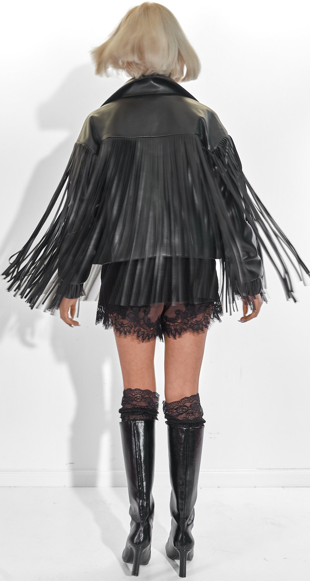 Наш новий бомбер із екошкіри з бахромою – це виклик нудним образам і твоя нова модна залежність.