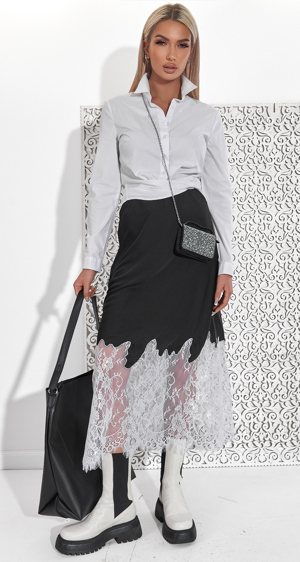 Вишукане Мереживо: Контрастна (або тон) ажурна вставка по низу надає спідниці ту саму інтригуючу нотку, яка перетворює повсякденний образ на вечірній, а нудний – на шикарний.
