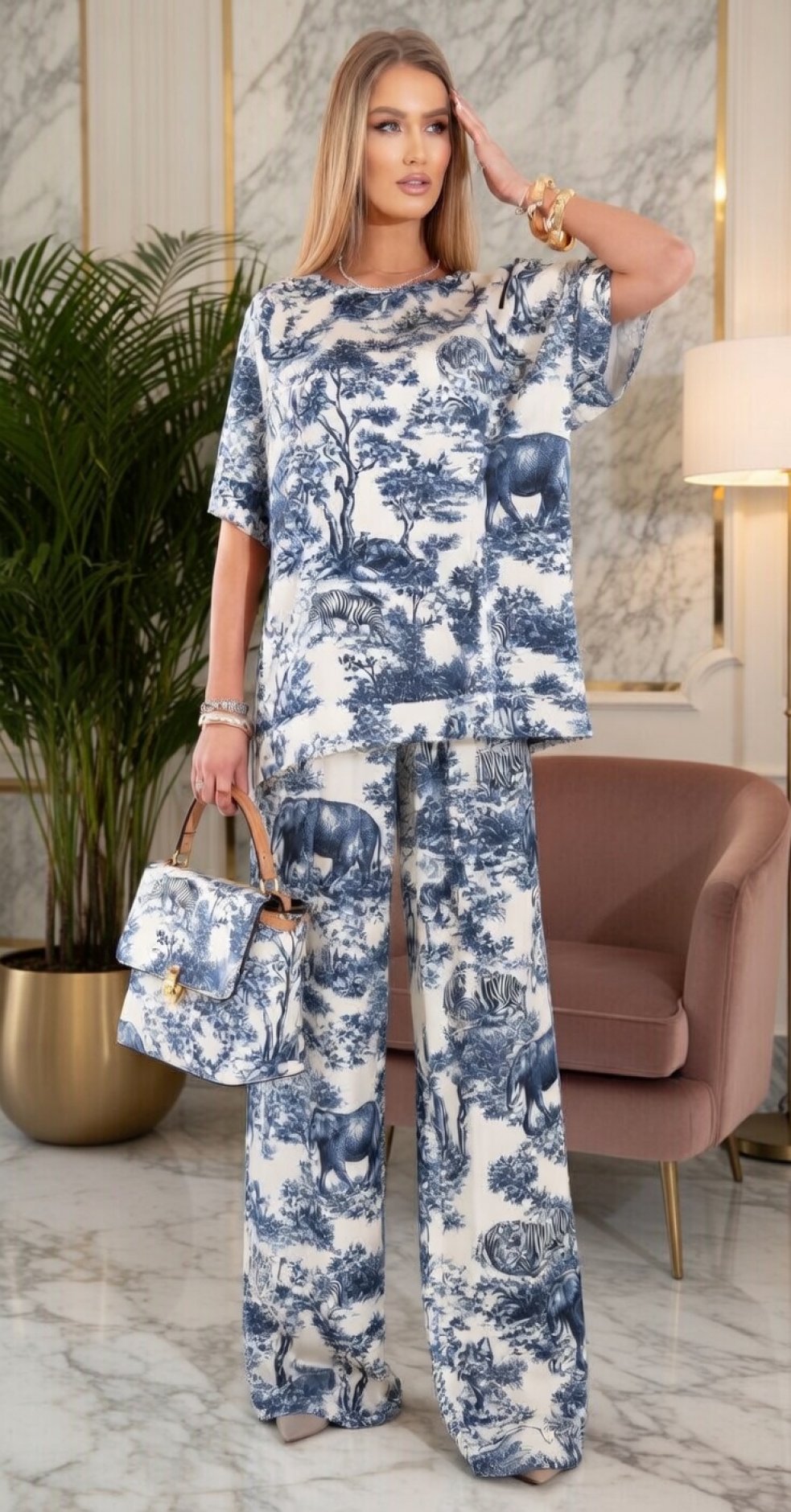 Легкий шовковий костюм з модним принтом!
