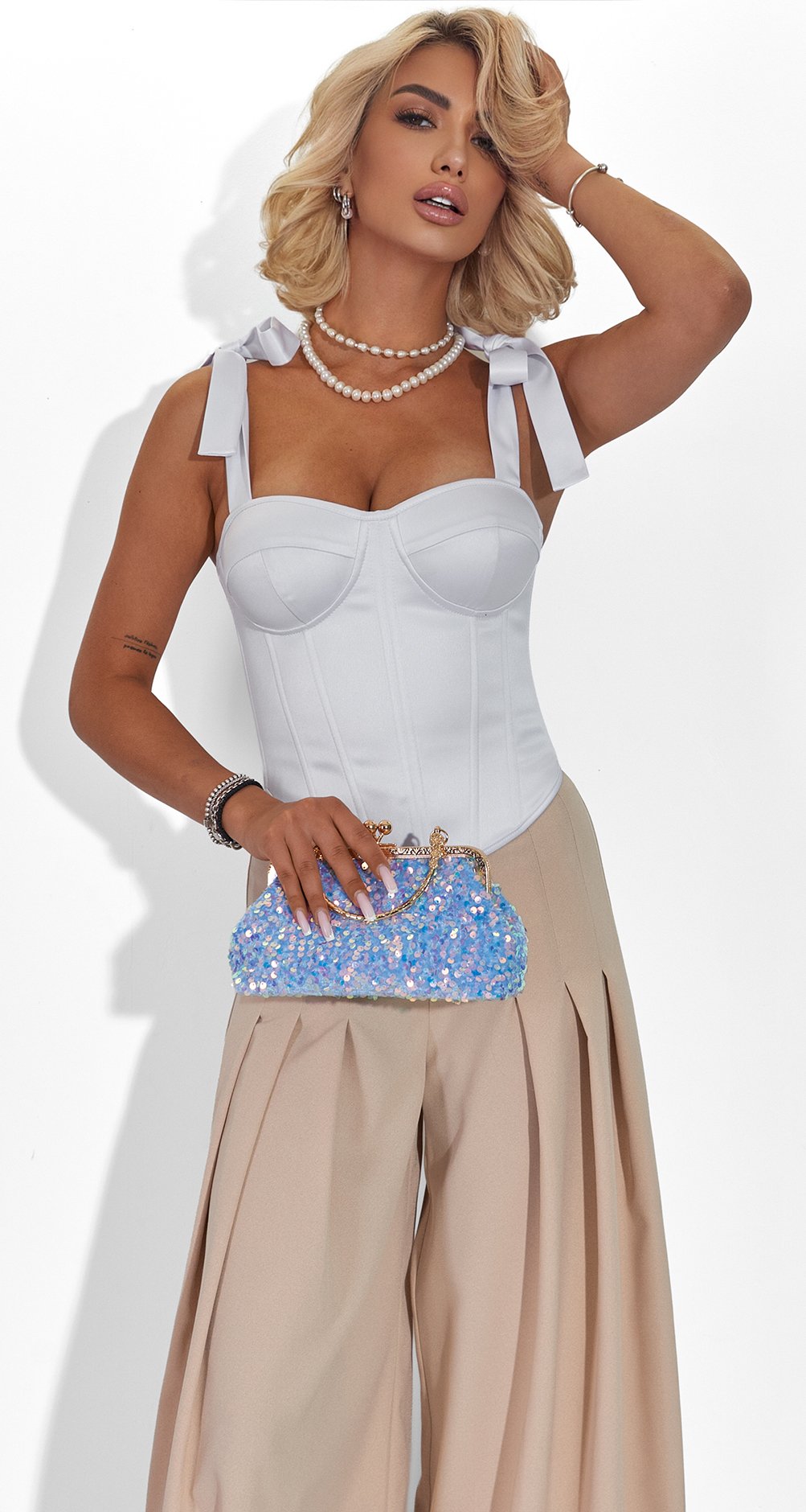 Корсет виконаний з ніжного шовковистого матеріалу, що приємно відчувається на шкірі та дарує неймовірний комфорт. Ідеальний як для романтичної вечері, так вечірнього виходу. Поєднуйте його з джинсами для створення стильного повсякденного образу або зі спідницею-олівцем, щоб підкорити всіх на вечірці.