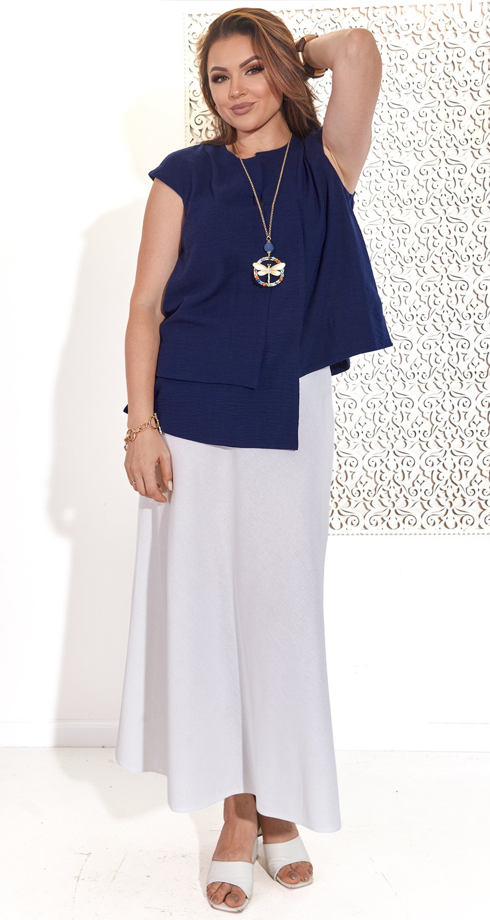 Відчуйте себе бездоганно у цьому мінімалістичному та неймовірно стильному лляному комплекті. Поєднання архітектурної блузки і спідниці створює образ, гідний модних показів.