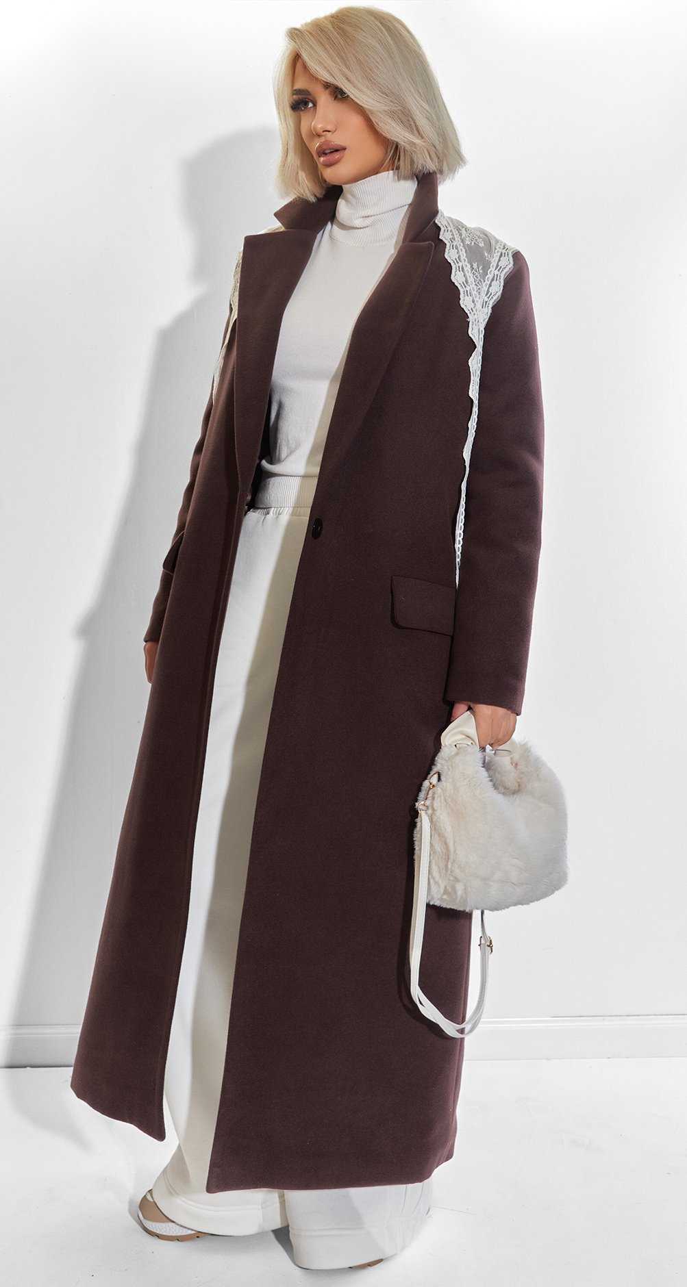 Наше пальто прямого силуету з м'якого кашеміру - це ідеальне рішення для тих, хто цінує стильну свободу та комфорт.