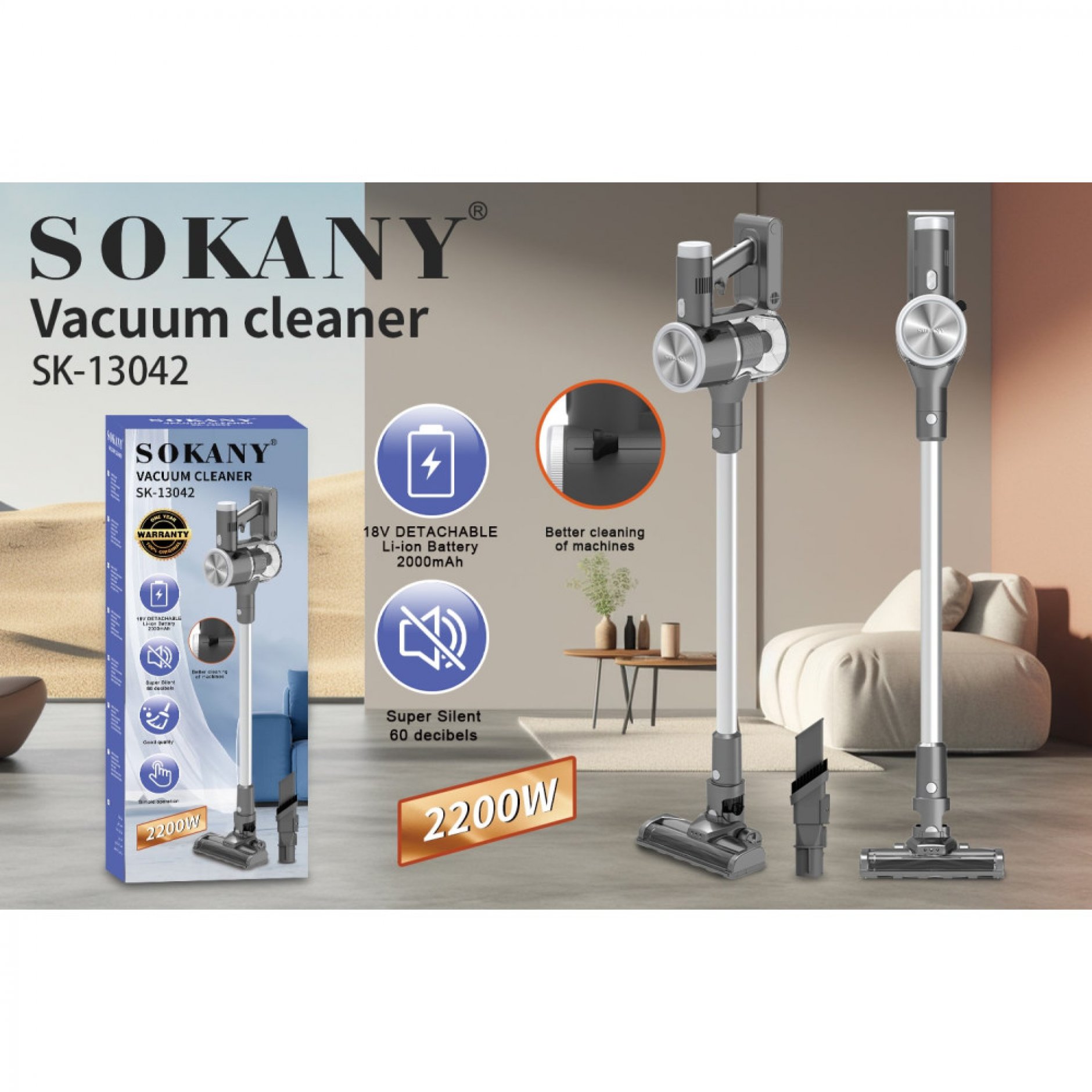 Вертикальний пилосос SK-13042 пропонує потужність 2200 Вт для ретельного прибирання. Завдяки знімному літій-іонному акумулятору (18 В, 2000 мАг) він працює до 30 хвилин на одному заряді. Ємність пилозбірника становить 0,6 л, а рівень шуму — лише 60 дБ. Потужність всмоктування ≥26 кПа забезпечує ефективне прибирання. Заряджається лише за 4 години та підходить для прибирання цілої кімнати.