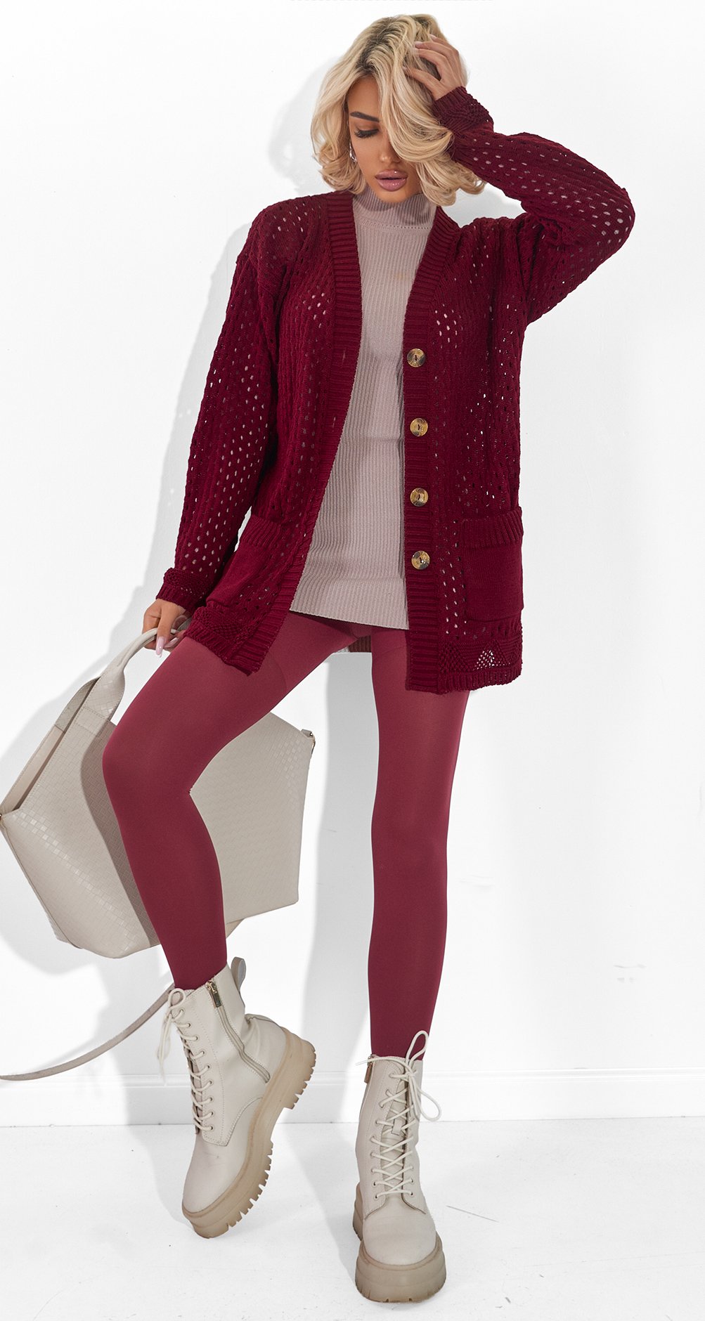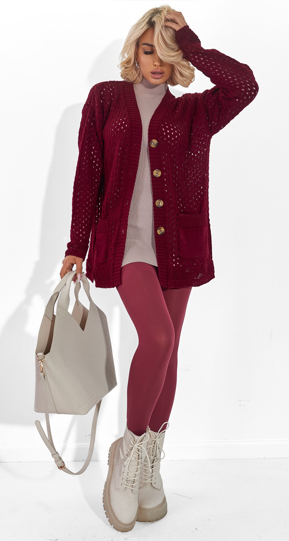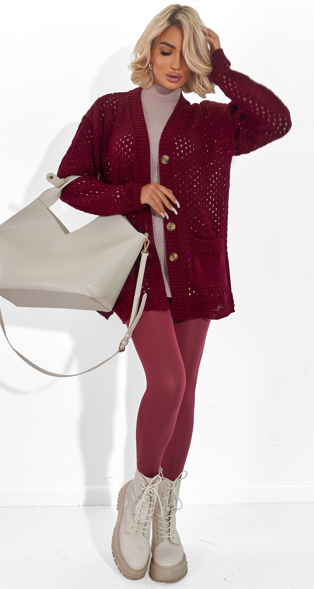 Теплий, але легкий, цей в'язаний кардиган оверсайз стане вашим улюбленим супутником у прохолодні літні вечори та затишні осінні дні. Практичні кишені додають функціональності та зручності.