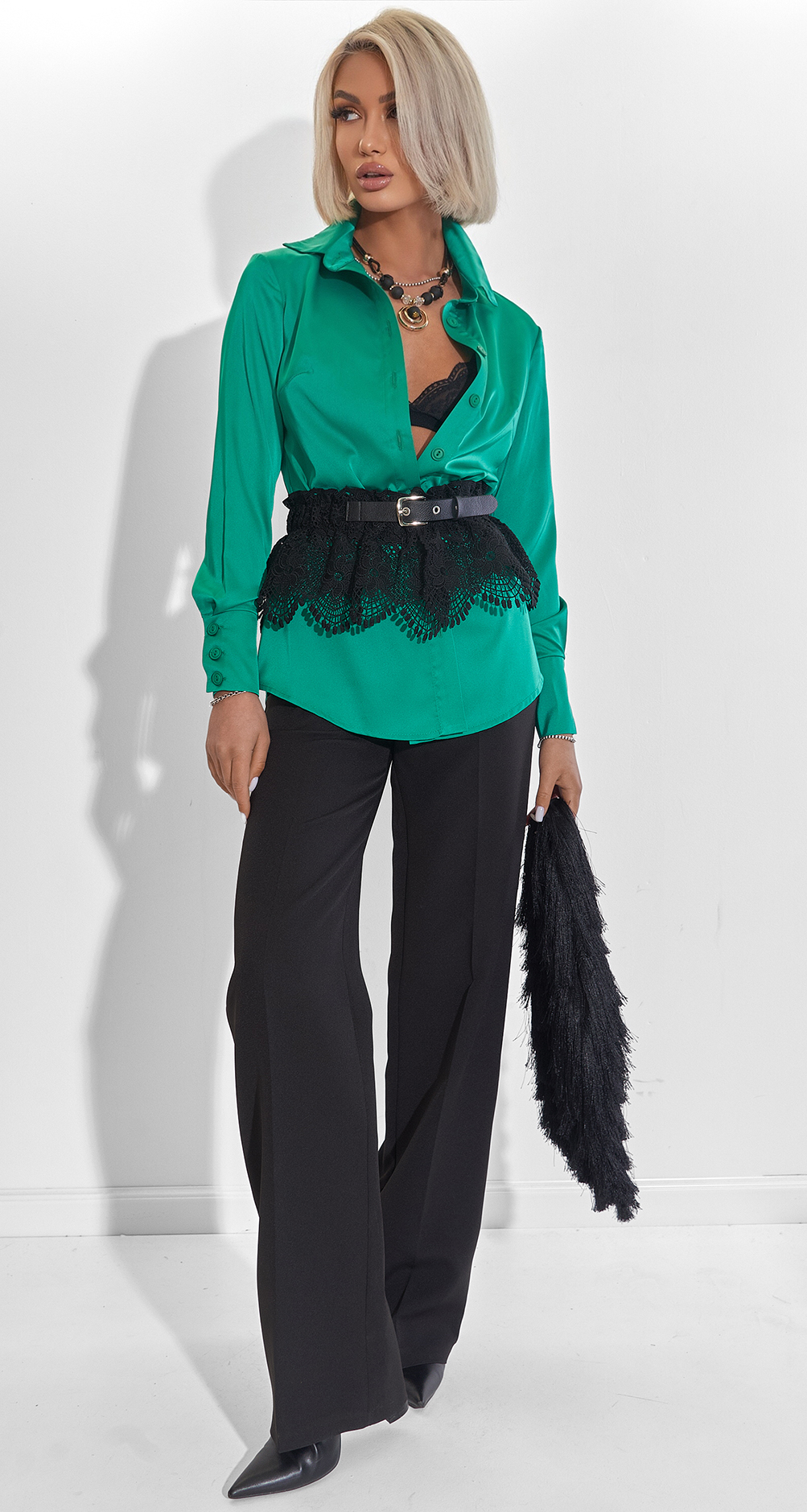 Ця блуза з еко-шовку – втілення ніжності та статусу. Вона створена для тих моментів, коли хочеться почуватися легкою, але мати бездоганний вигляд.