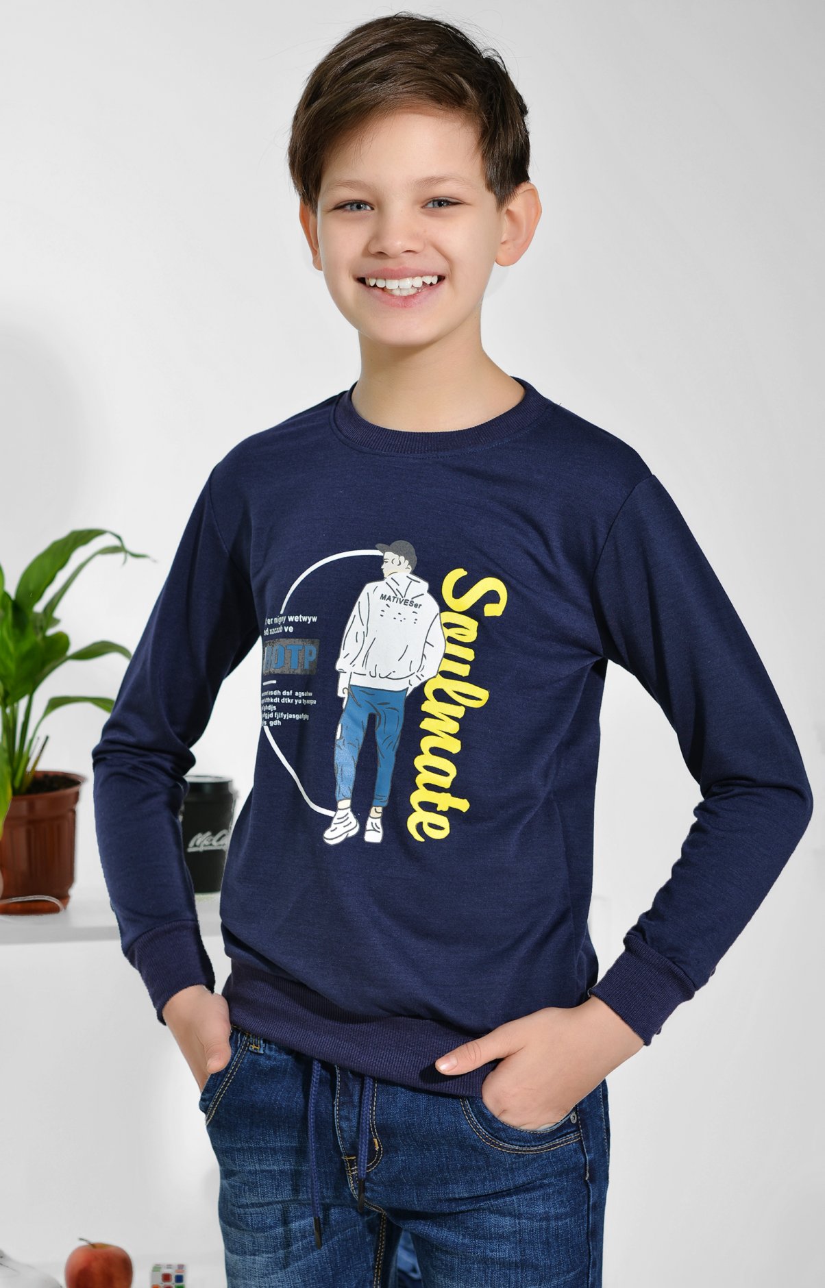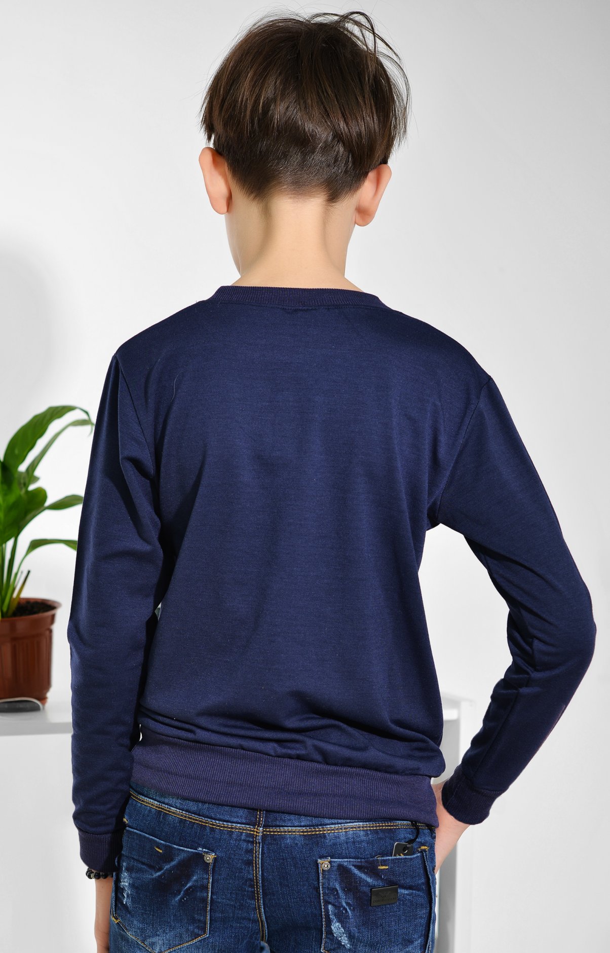 Трикотажний батник прикрашений принтом. Виконаний із комфортного матеріалу. Модель має напівприталений силует.