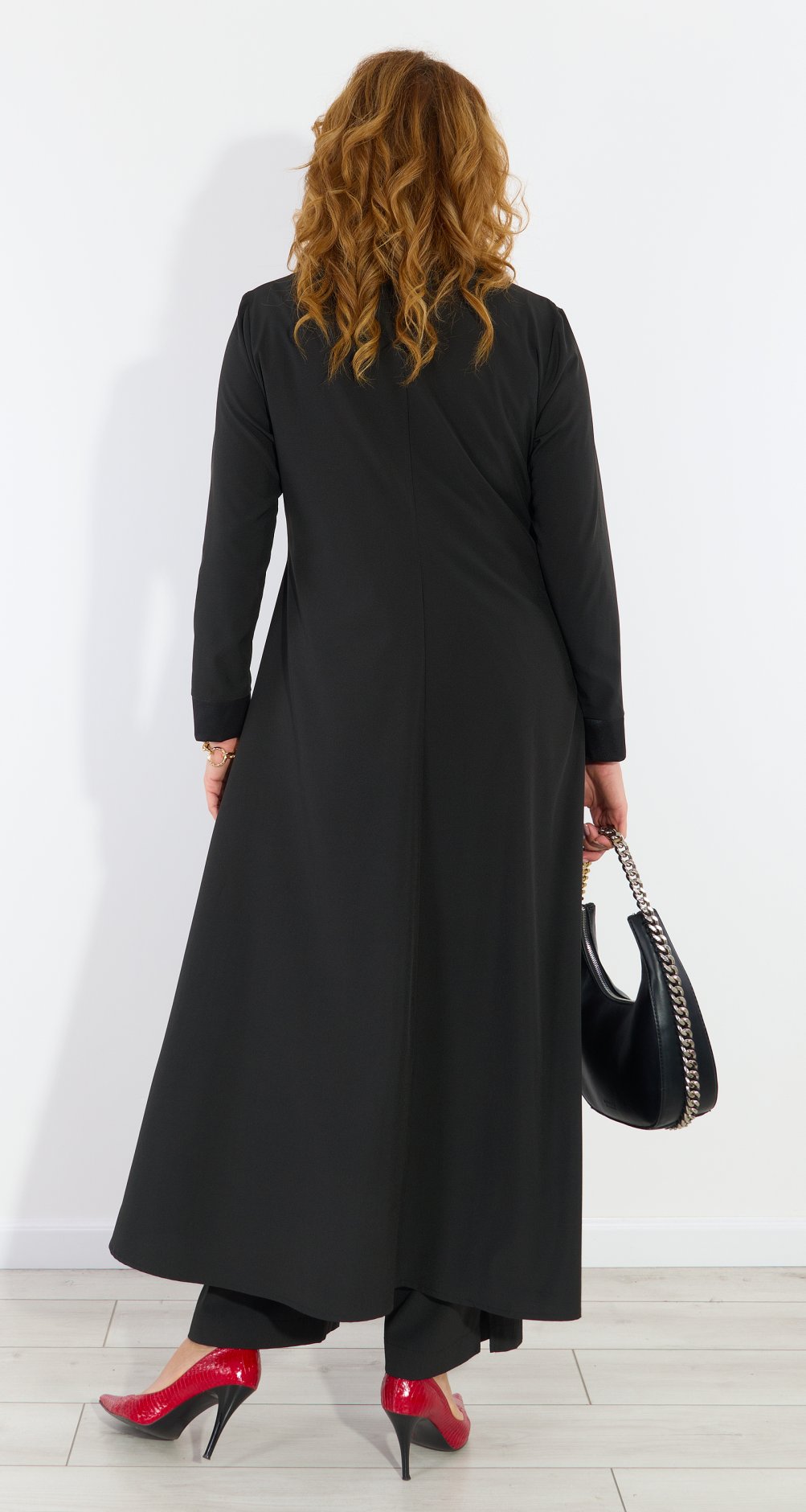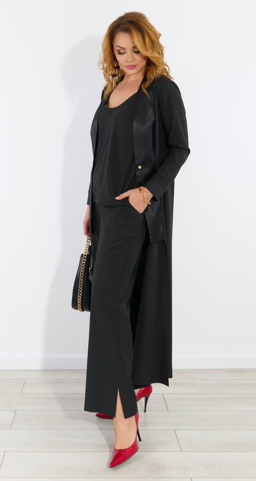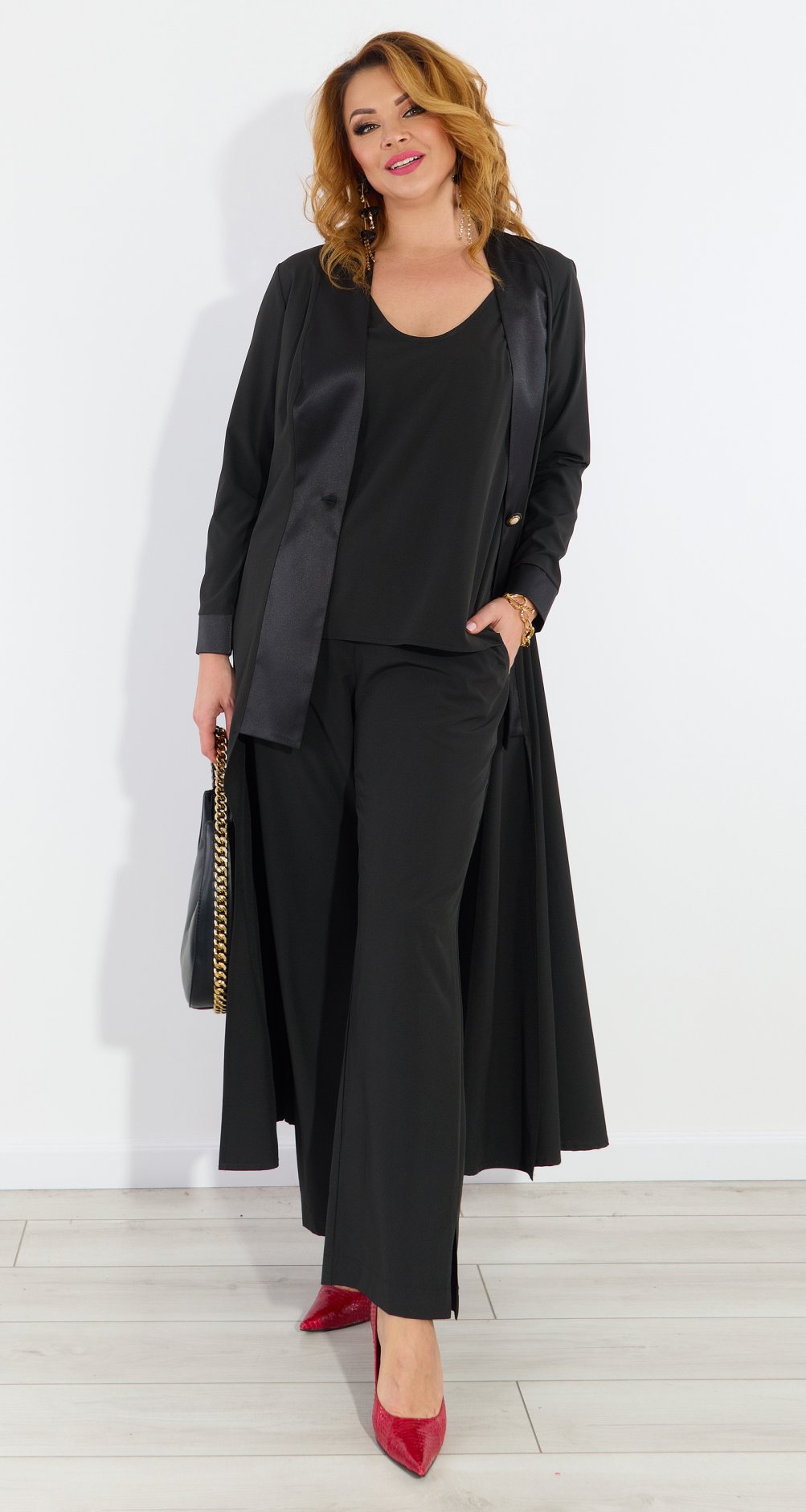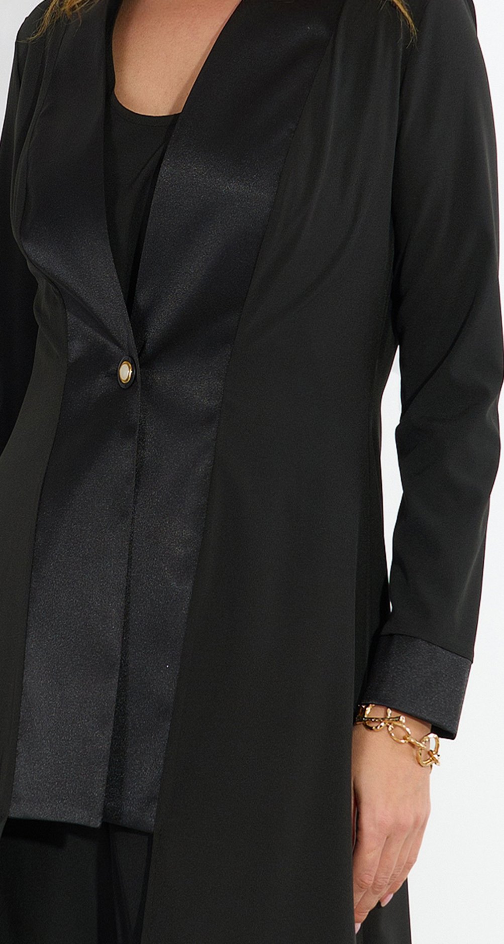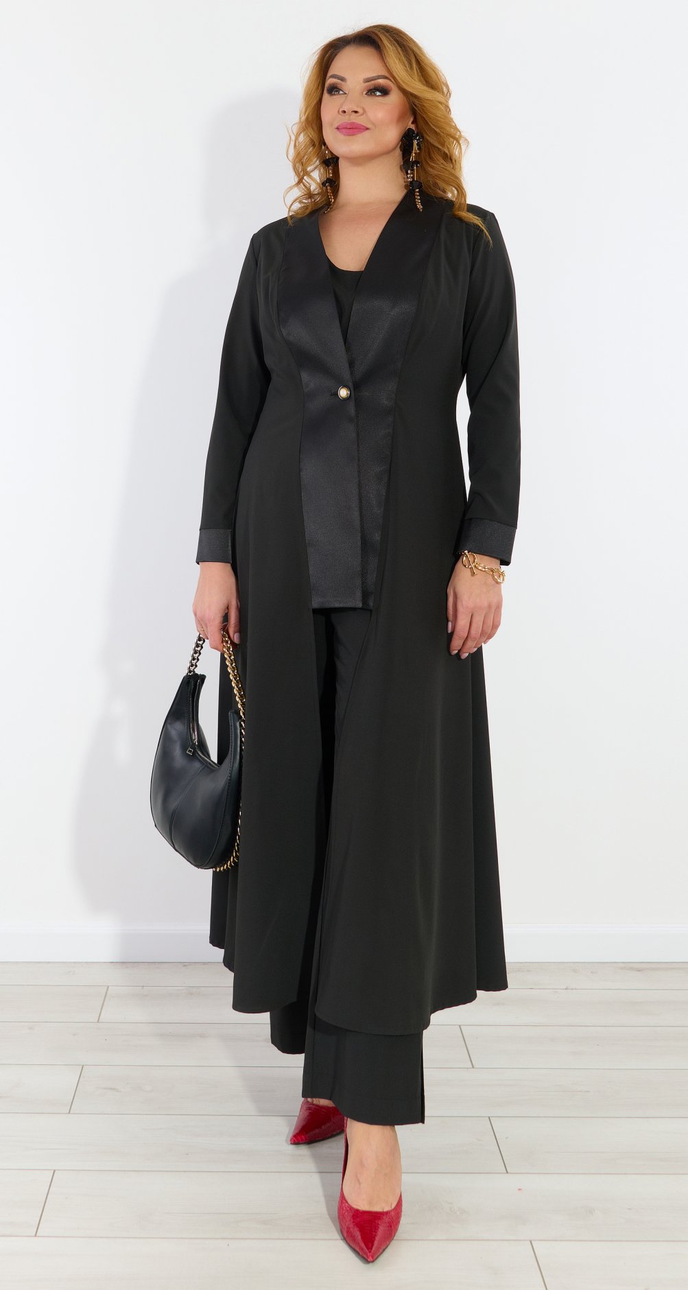 Подовжений кардиган з шовковистою обробкою дозволяє створити вечірній святковий образ!