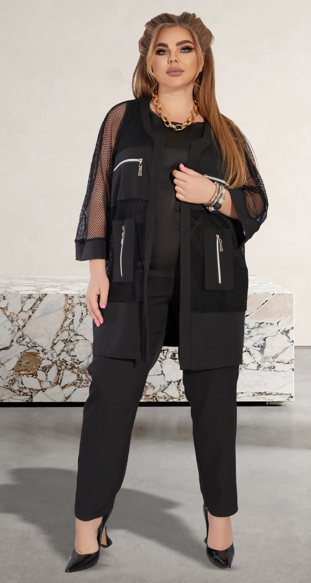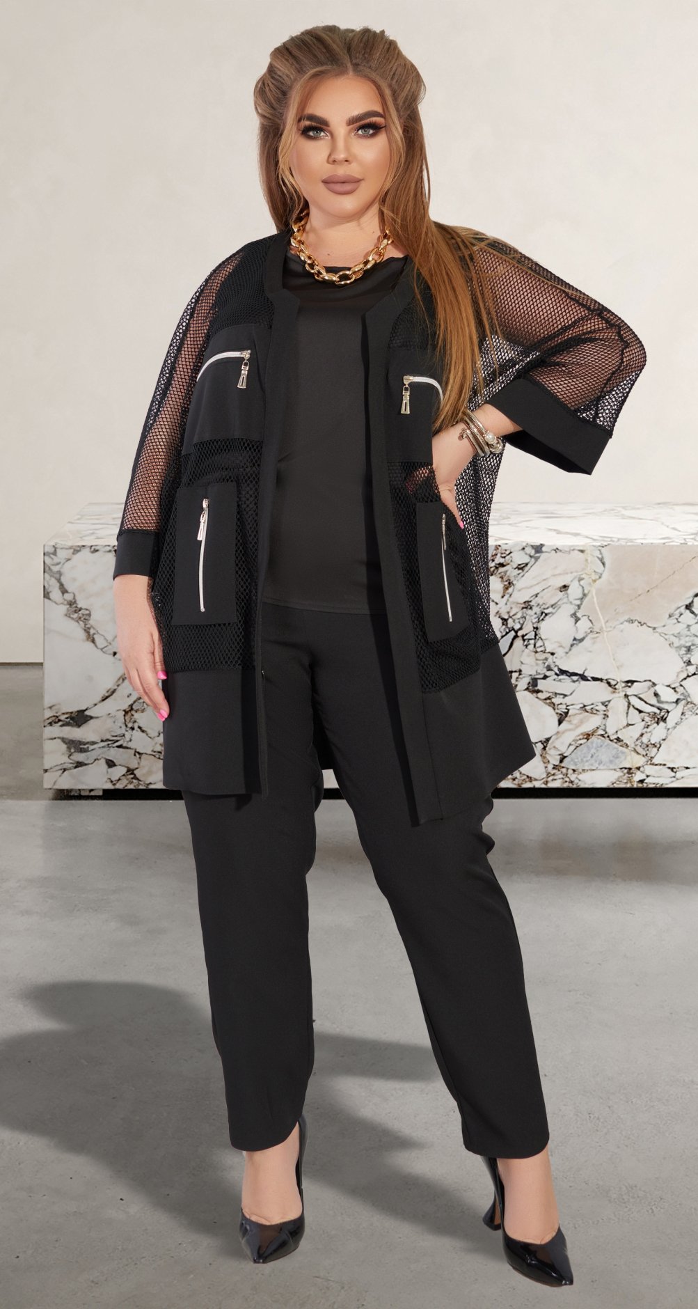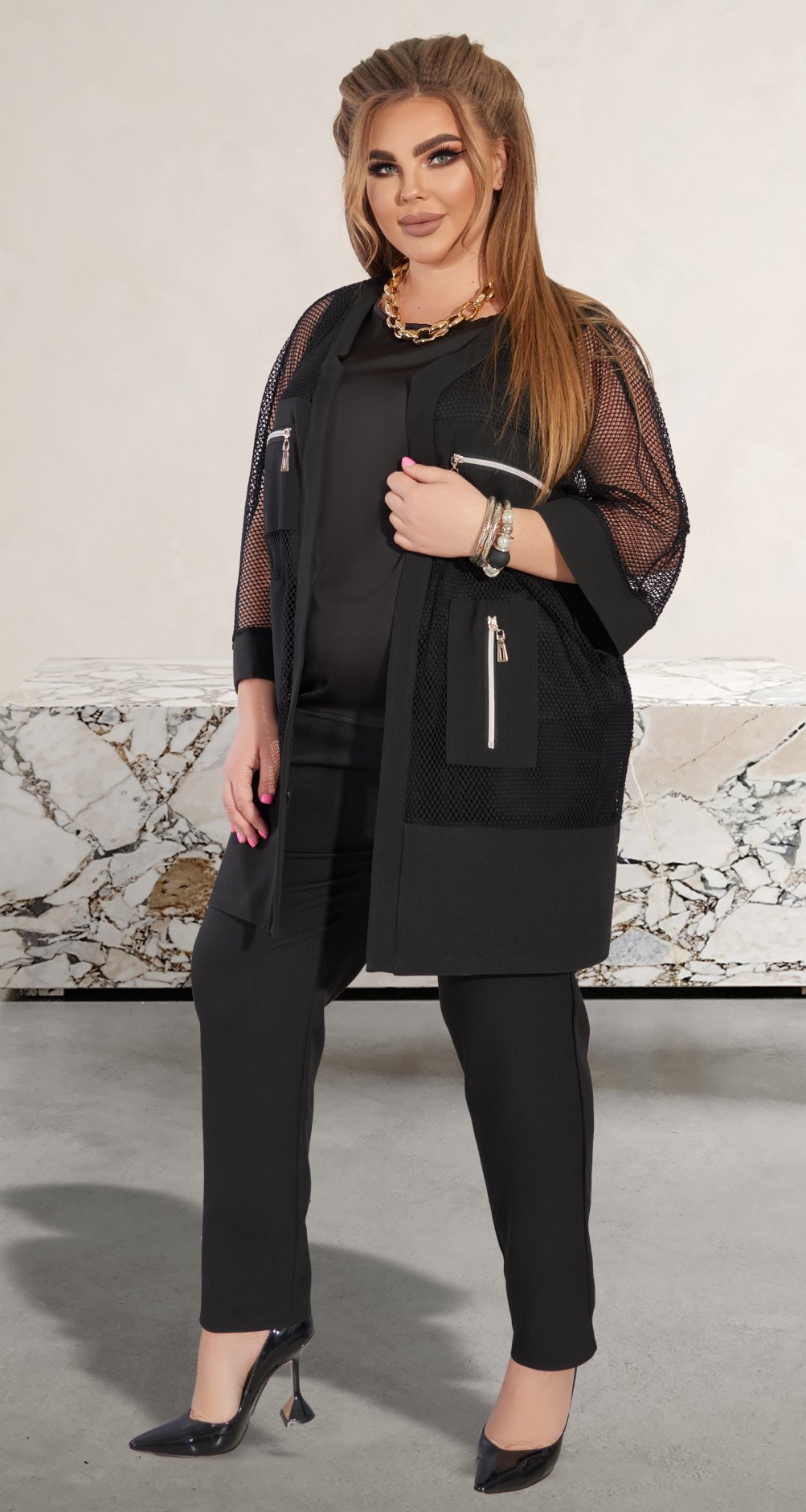 Вільний кардиган з ефектної сетки , шелковий топ і брюки з костюмної тканини!