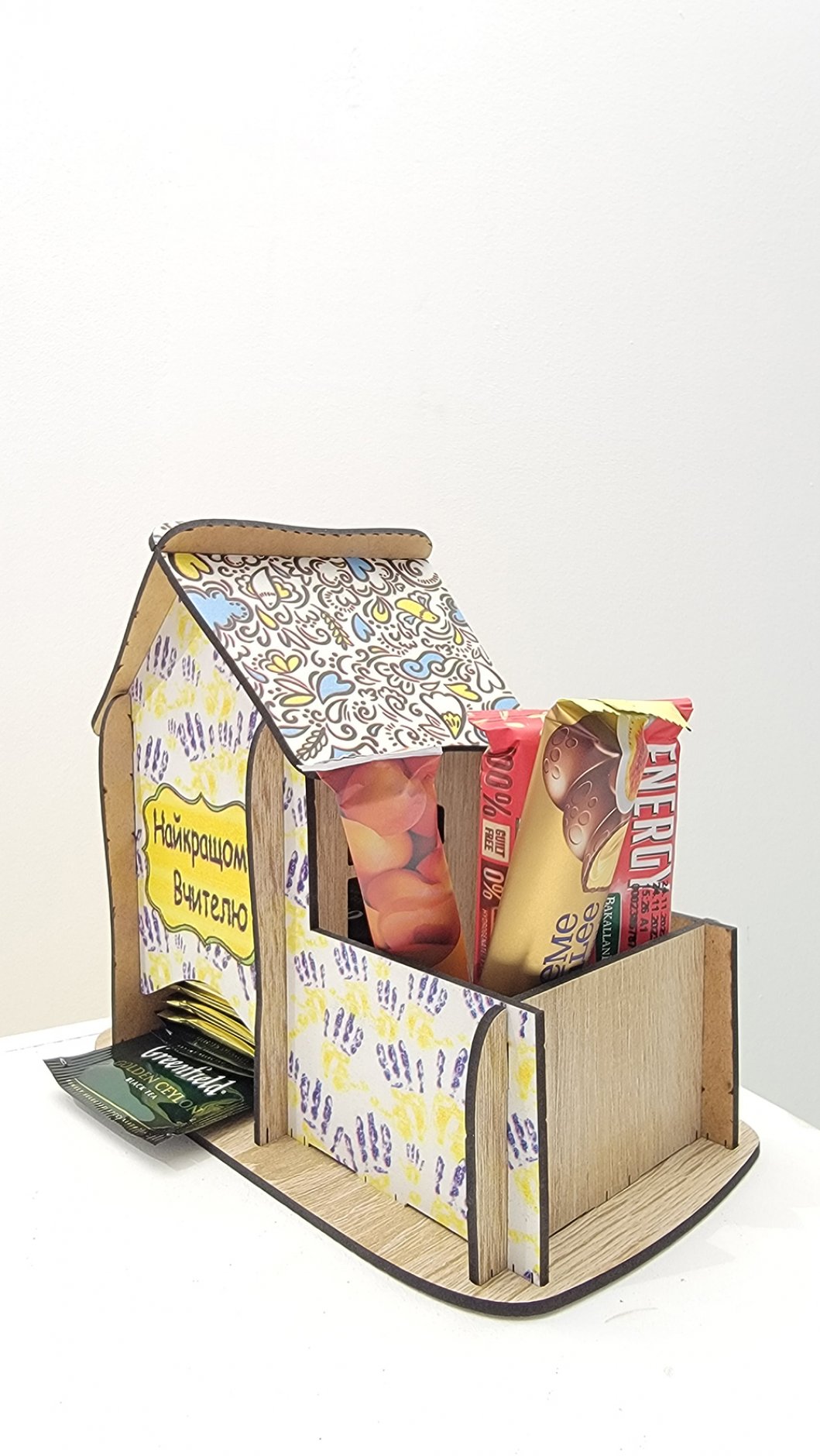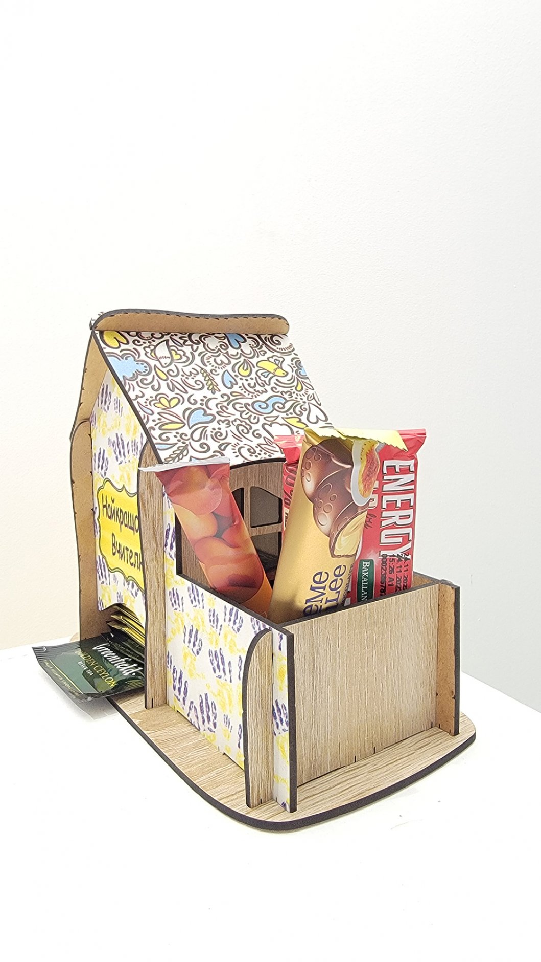 Коробочка для зберігання чайних пакетиків у вигляді будиночка – це чудовий подарунок для любителів чаю та просто для тих, хто цінує затишок та домашню атмосферу. Виготовлено її з якісної ХДФ, яка витримує довге використання і не деформується з часом. Дерев'яний будиночок для пакетиків чаю може стати прикрасою не тільки для кухні, а й для офісу, створюючи атмосферу домашнього затишку та комфорту. Будиночок для пакетиків чаю має зручну кришку, що відкривається, що дозволяє легко замінювати або поповнювати вміст. Гарний будиночок прикрасить сервірування столу, додасть декору до інтер'єру будинку та підкреслить чайну тематику. Можна подарувати будиночок для пакетиків чаю як самостійний подарунок або у поєднанні з чайним сервізом, створивши набір чаю, який радуватиме свого власника щодня. В асортименті є різні будиночки на будь-який привід як для дітей, так і для дорослих, на день народження, 8 березня, новий рік, різдво, день вчителя, день матері та інші свята. Будиночок для чаю підійде як для мами, бабусі, тітки, так і подруги, колеги, начальника. Чайний будиночок може зберігати різні види чаю: зелений, чорний, фруктовий, трав'яний, м'ятний, імбирний, квітковий та інші. Комбінуйте улюблені аромати, створюйте свій унікальний чайний набір. Підставка для пакетиків чаю додатково прикрасить та організує сервірування столу та стане чудовою прикрасою для кухні. Крім того, чайний будиночок оснащений відділенням для солодощів, спецій, серветок або інших дрібниць, які можуть стати в нагоді на кухні під час чаювання або їди. У ньому можна зберігати цукерки, вафлі, шоколадки, батончики та багато інших солодощів. Цей зручний відділ для зберігання дрібниць дозволить тримати кухню гаразд! Розмір 15х10,5х18 см. Дорогий покупець, ми будемо дуже вдячні за будь-який відгук про нашу продукцію, фотовідгуки, коментарі чи оцінки.