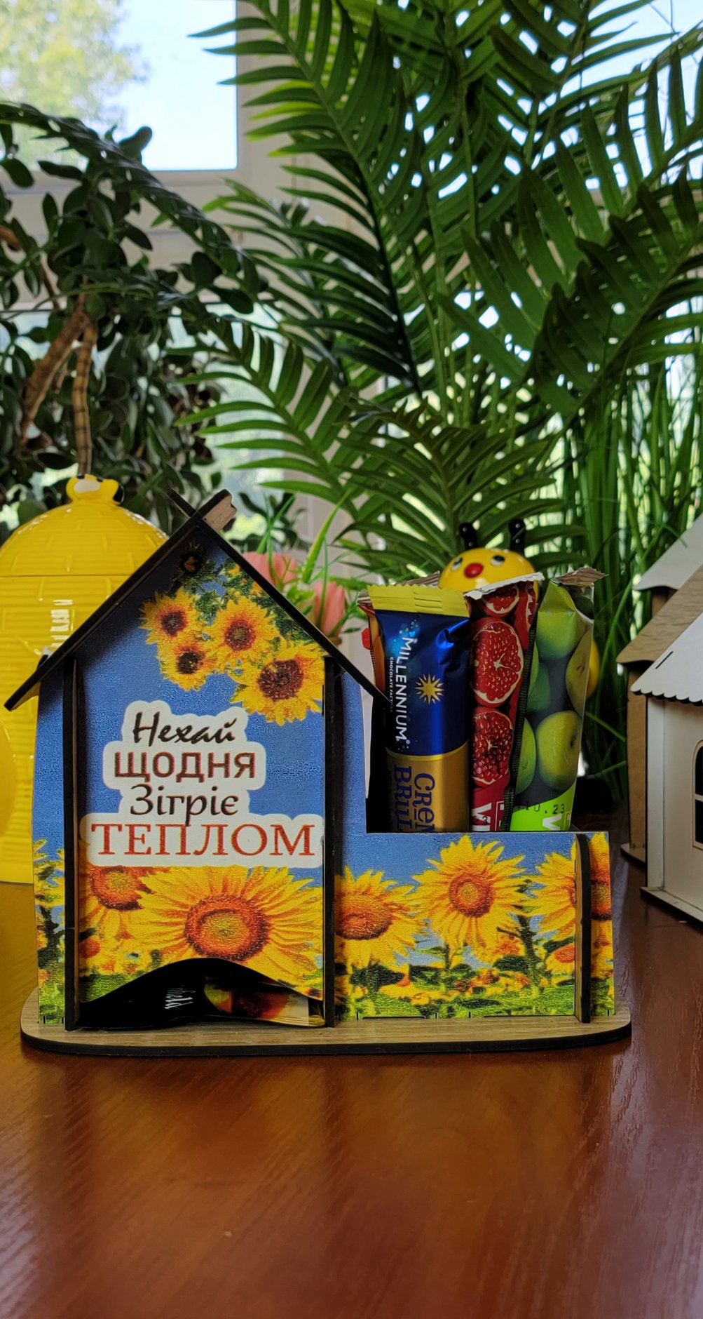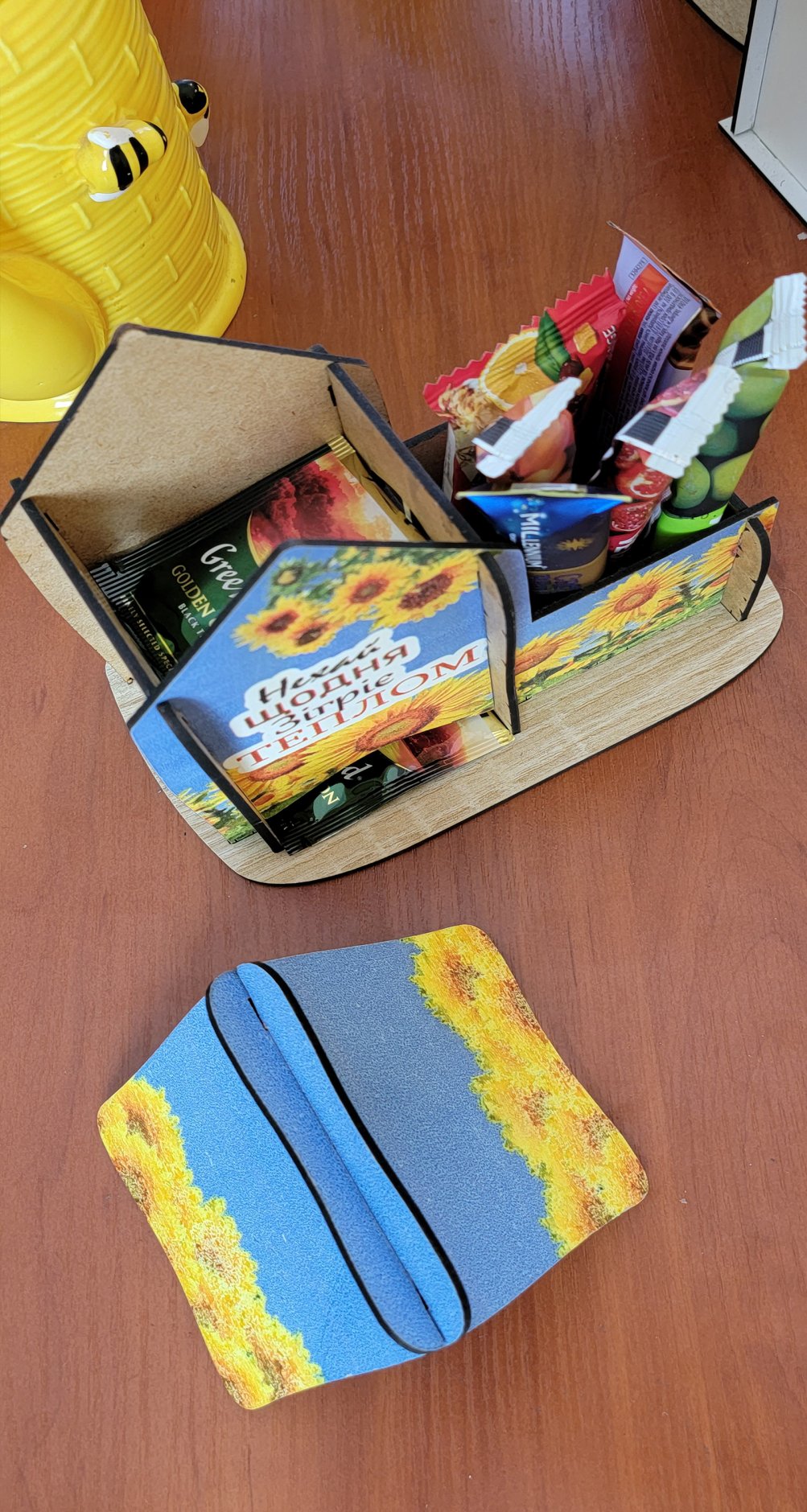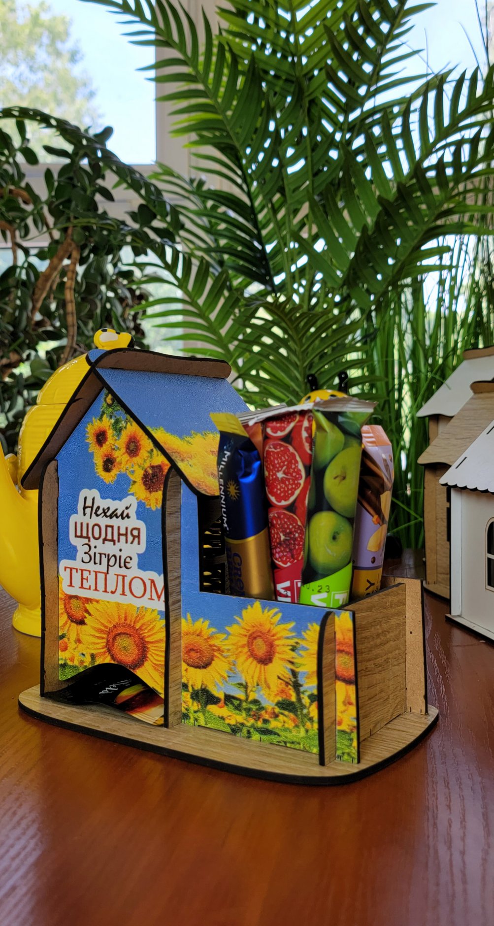 Коробочка для зберігання чайних пакетиків у вигляді будиночка – це чудовий подарунок для любителів чаю та просто для тих, хто цінує затишок та домашню атмосферу. Виготовлено її з якісної ХДФ, яка витримує довге використання і не деформується з часом. Дерев'яний будиночок для пакетиків чаю може стати прикрасою не тільки для кухні, а й для офісу, створюючи атмосферу домашнього затишку та комфорту. Будиночок для пакетиків чаю має зручну кришку, що відкривається, що дозволяє легко замінювати або поповнювати вміст. Гарний будиночок прикрасить сервірування столу, додасть декору до інтер'єру будинку та підкреслить чайну тематику. Можна подарувати будиночок для пакетиків чаю як самостійний подарунок або у поєднанні з чайним сервізом, створивши набір чаю, який радуватиме свого власника щодня. В асортименті є різні будиночки на будь-який привід як для дітей, так і для дорослих, на день народження, 8 березня, новий рік, різдво, день вчителя, день матері та інші свята. Будиночок для чаю підійде як для мами, бабусі, тітки, так і подруги, колеги, начальника. Чайний будиночок може зберігати різні види чаю: зелений, чорний, фруктовий, трав'яний, м'ятний, імбирний, квітковий та інші. Комбінуйте улюблені аромати, створюйте свій унікальний чайний набір. Підставка для пакетиків чаю додатково прикрасить та організує сервірування столу та стане чудовою прикрасою для кухні. Крім того, чайний будиночок оснащений відділенням для солодощів, спецій, серветок або інших дрібниць, які можуть стати в нагоді на кухні під час чаювання або їди. У ньому можна зберігати цукерки, вафлі, шоколадки, батончики та багато інших солодощів. Цей зручний відділ для зберігання дрібниць дозволить тримати кухню гаразд! Розмір 15х10,5х18 см. Дорогий покупець, ми будемо дуже вдячні за будь-який відгук про нашу продукцію, фотовідгуки, коментарі чи оцінки.