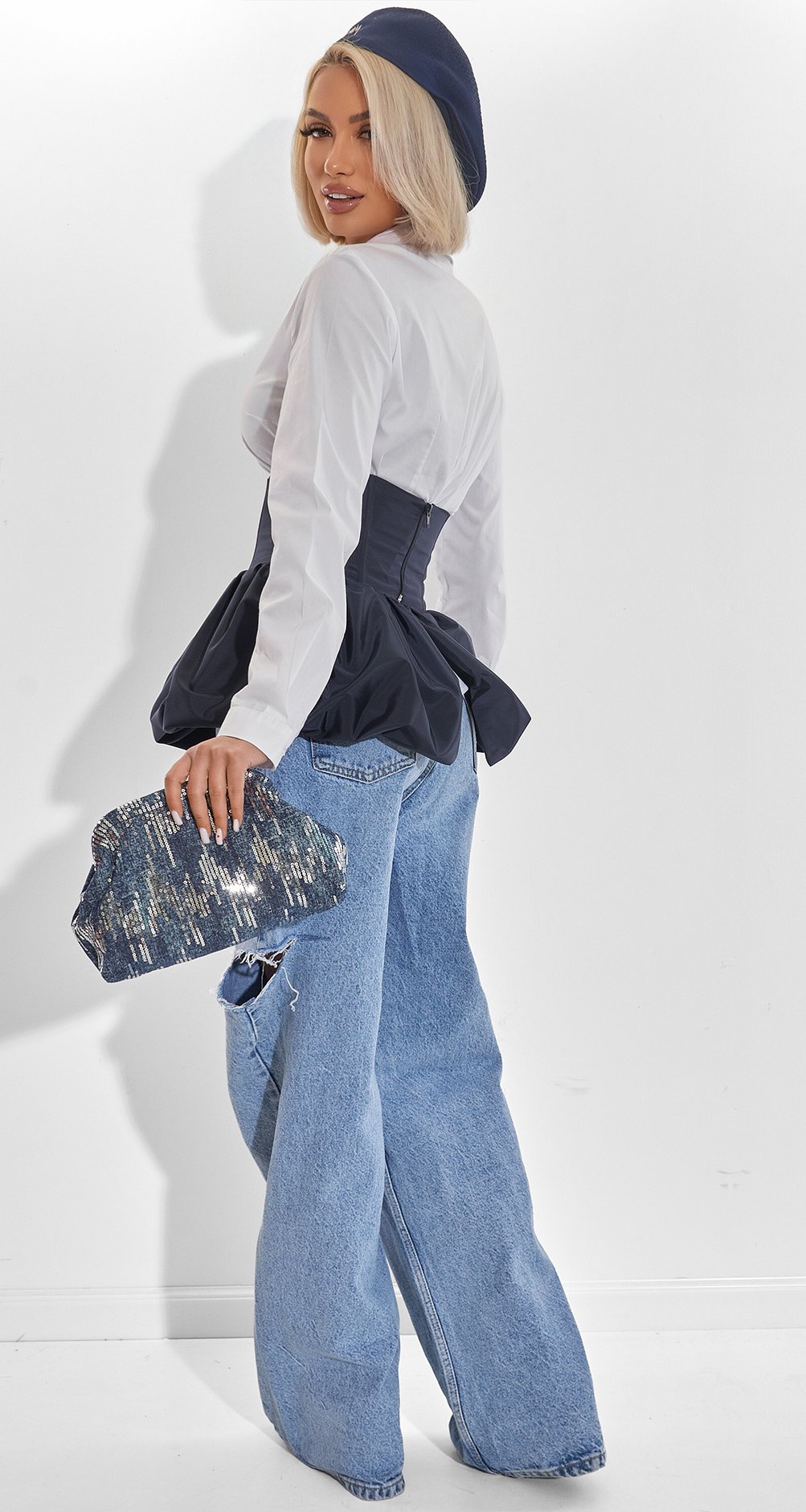 Універсальний шик: Незважаючи на свій блиск, джинсова основа дозволяє легко вписати сумочку навіть у найпростіший повсякденний образ, миттєво роблячи його "дизайнерським".