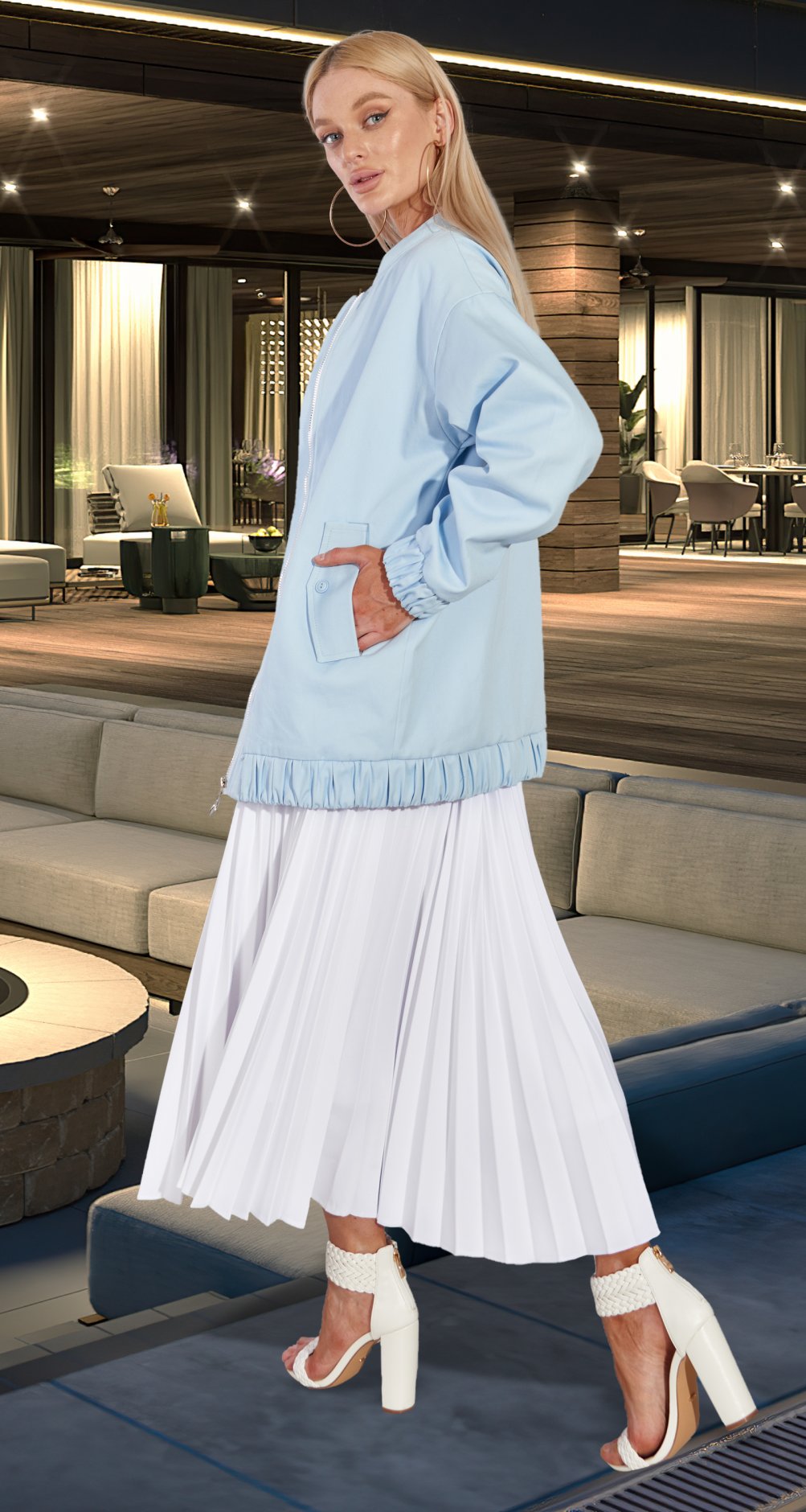 This stylish bomber jacket is the perfect addition to your look. Made from natural cotton denim, it provides comfort and freedom of movement. The delicate blue color and loose fit make it universal: it looks great with dresses, jeans or trousers.