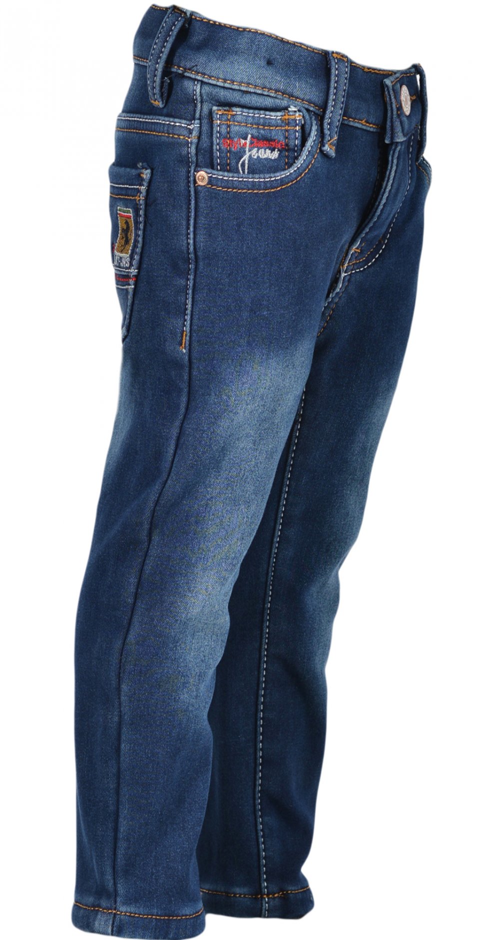 Boys' blue ripped jeans with straight leg and fleece. Excellent cut and fit.