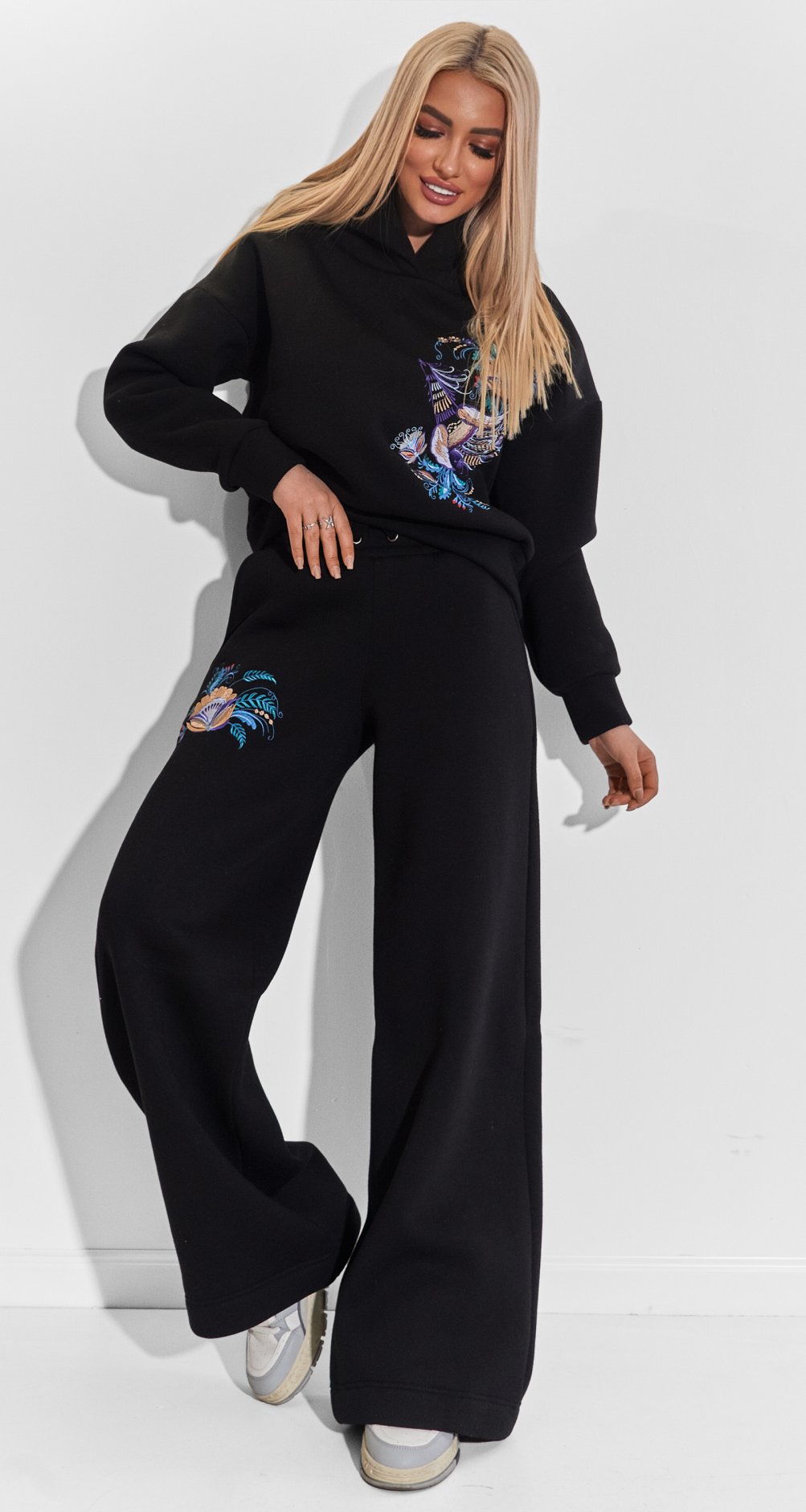 This suit is the embodiment of comfort and style. Loose palazzo trousers do not restrict movement, giving a feeling of lightness and ease, and exquisite embroidery gives the image a unique charm and individuality.