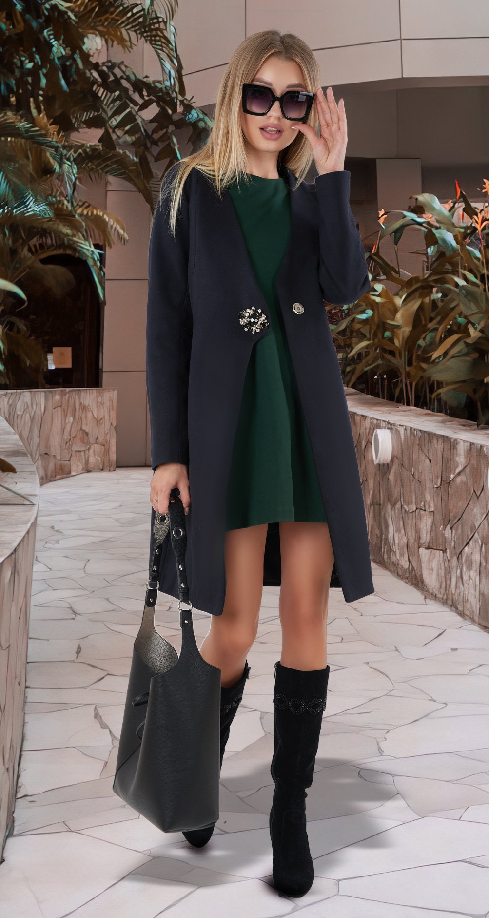 Fashionable cashmere coat in Glamor style.