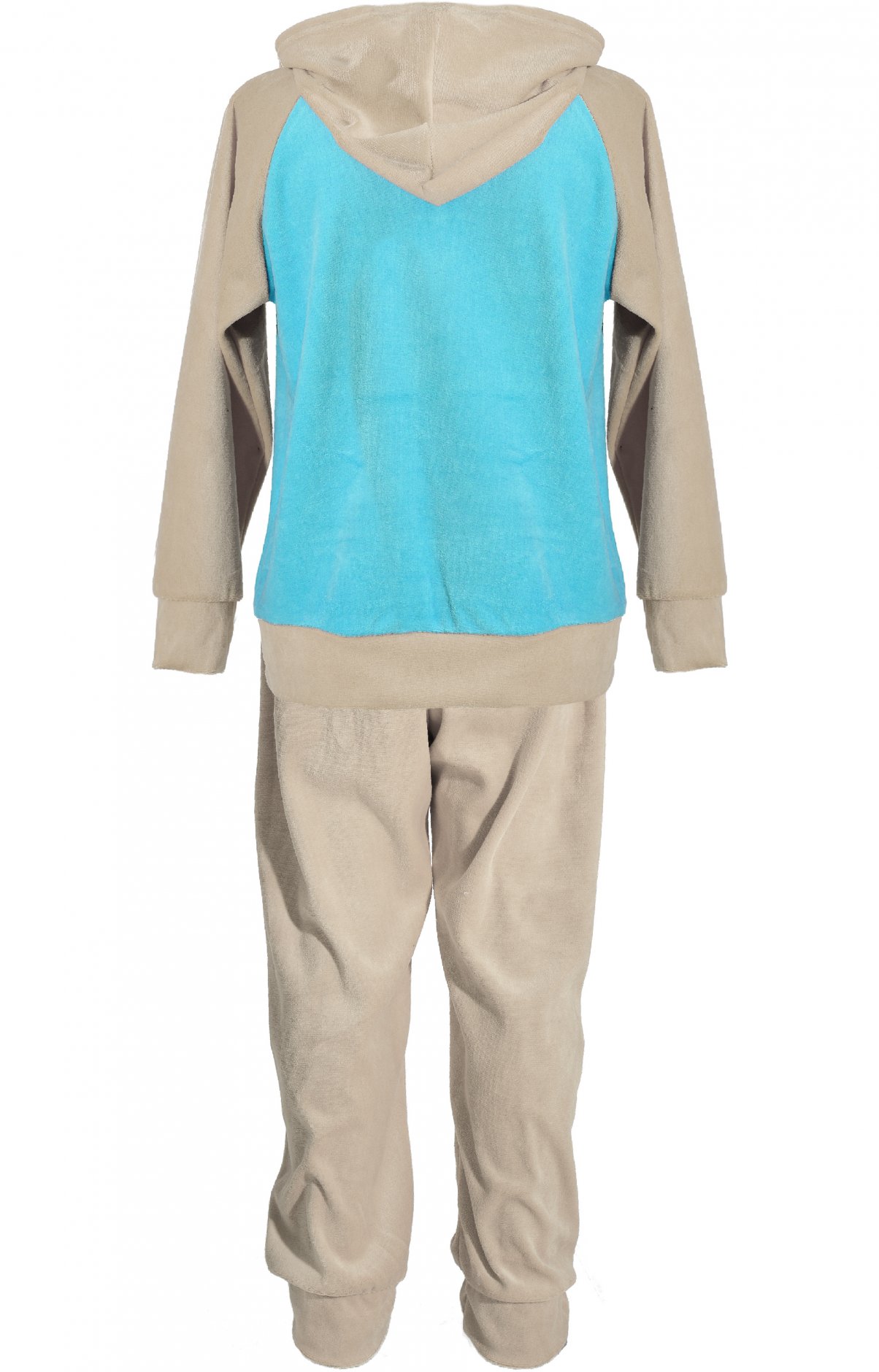 The model is very comfortable with a hood + 2 kangaroo pockets - everything is in its place. Velor is very pleasant to the body, pants with a good fit, comfortable.