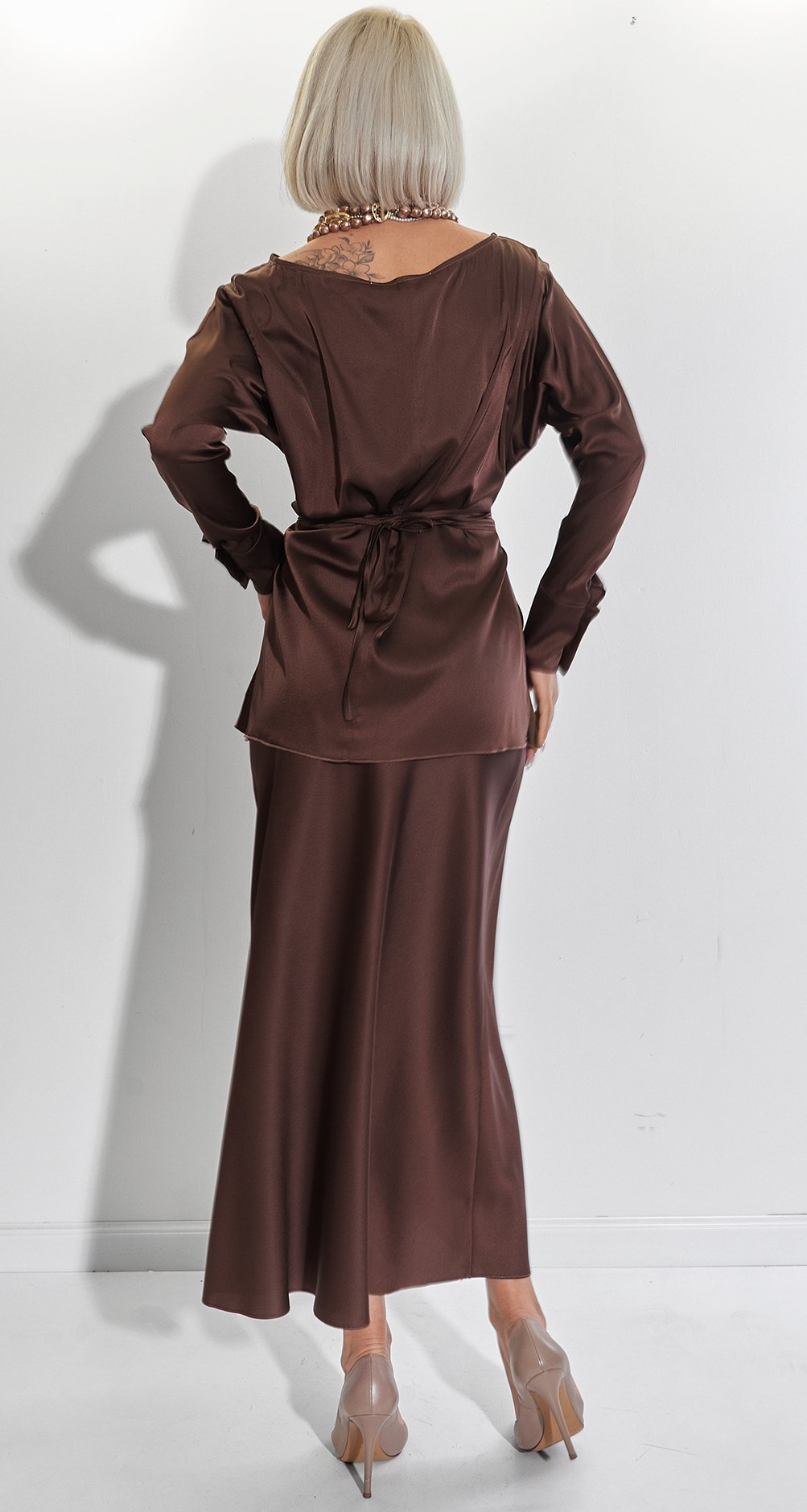 This suit is the embodiment of "Old Money" aesthetics and absolute femininity. We have combined the luxurious look of silk with the comfort that every woman dreams of.