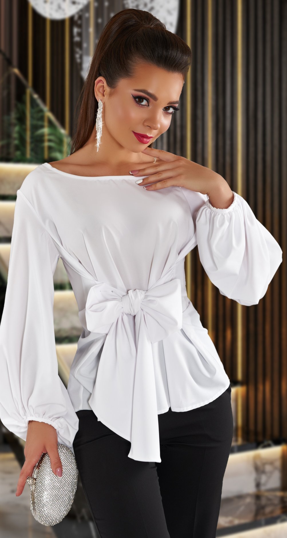 A beautiful neckline and a bow belt that emphasizes the waist!