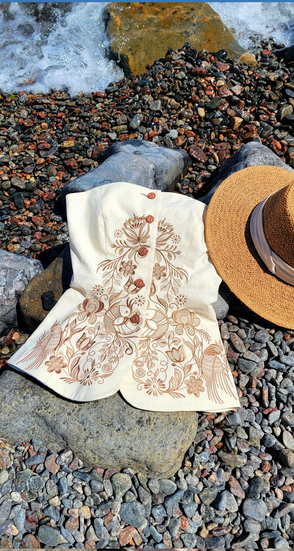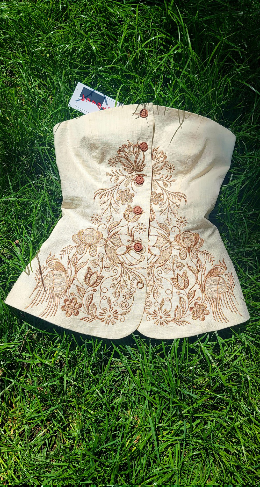 Feel the touch of nature with our linen corset decorated with unique embroidery. The breathable linen will give you a feeling of lightness, and the soft cotton lining will provide comfort for the whole day. An ideal choice for those who appreciate natural materials and refined style.