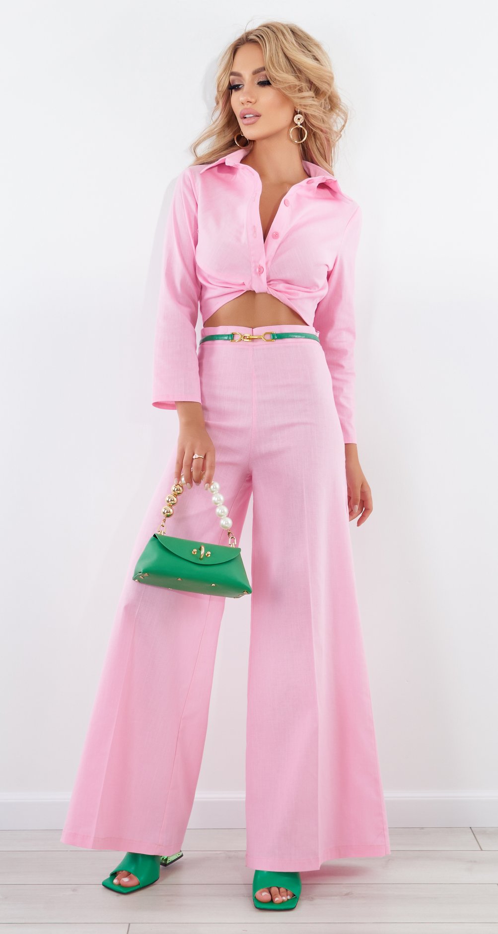 A waist-length shirt with a twist in the front! Fastens with buttons and a hidden zipper on the side!