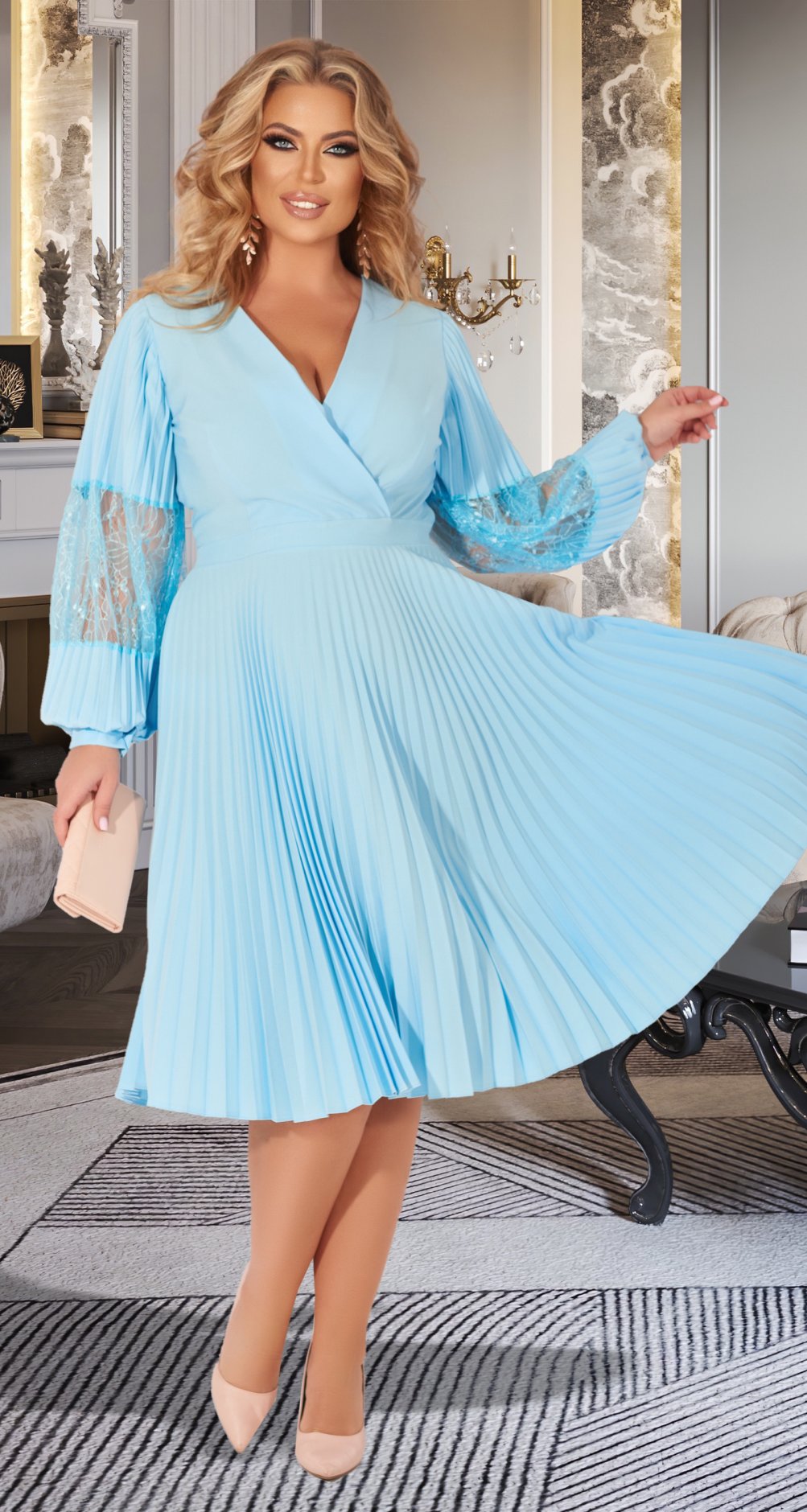 Luxurious sleeves and a flying skirt are made in pleated technique!