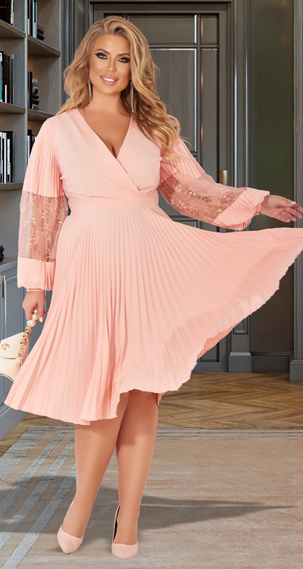 Luxurious sleeves and a flying skirt are made in pleated technique!
