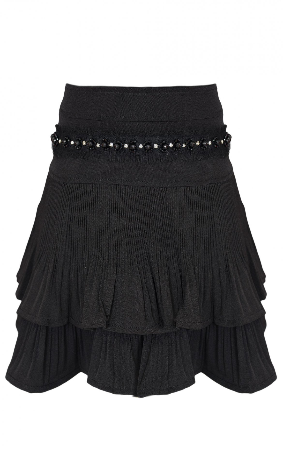 Flared skirt for girls with decorative beads and rhinestones in front. The skirt fastens with a hidden side zip.