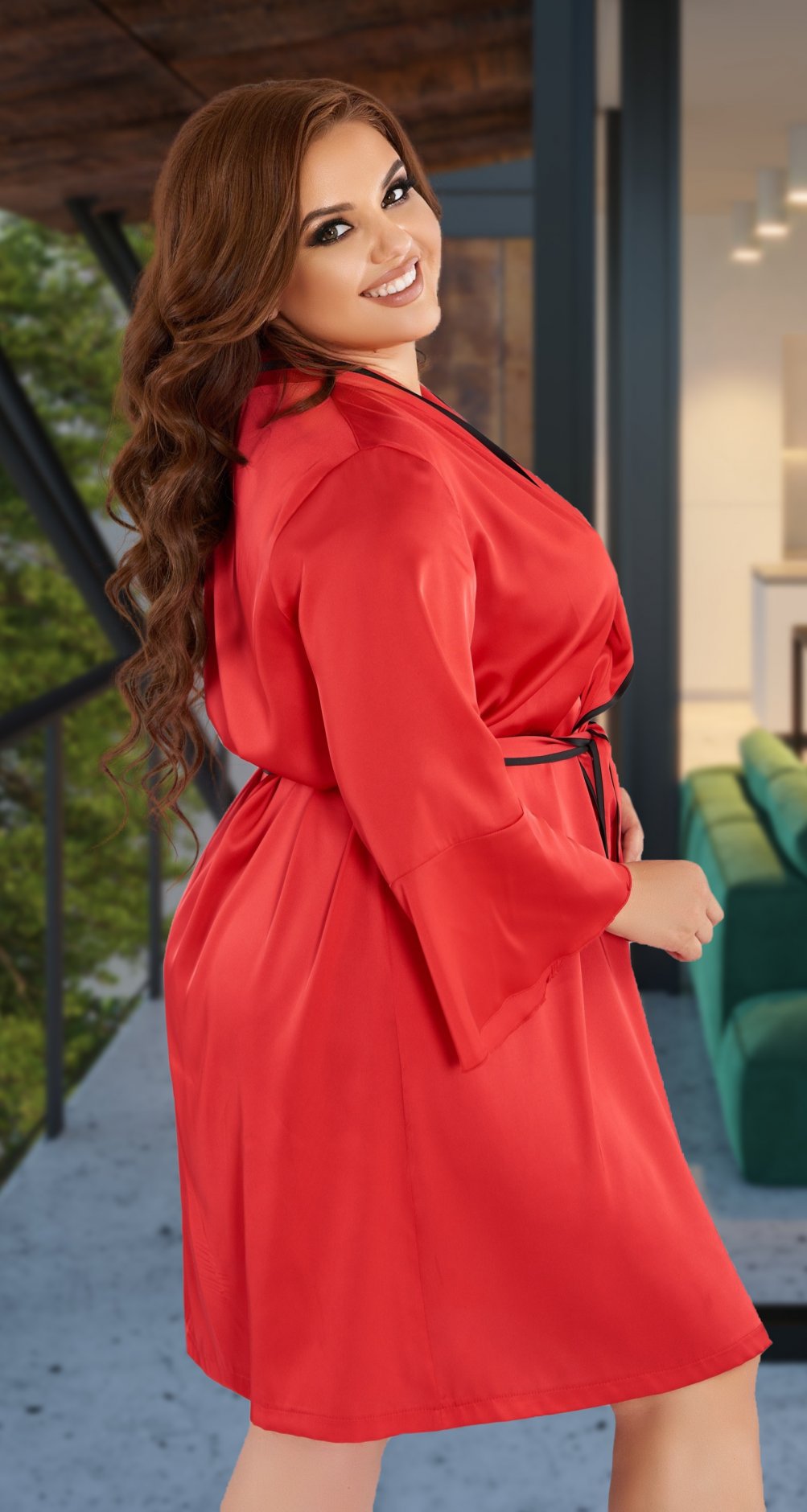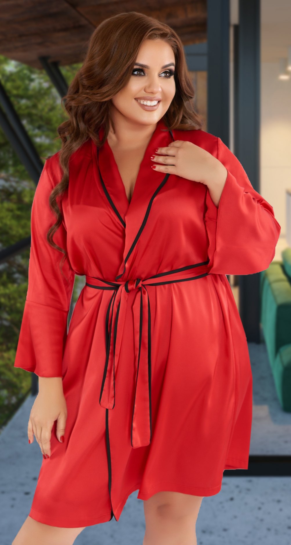 Due to the model, the dressing gown fits several sizes. Therefore, you can safely take size 42 by 40 and by 44.