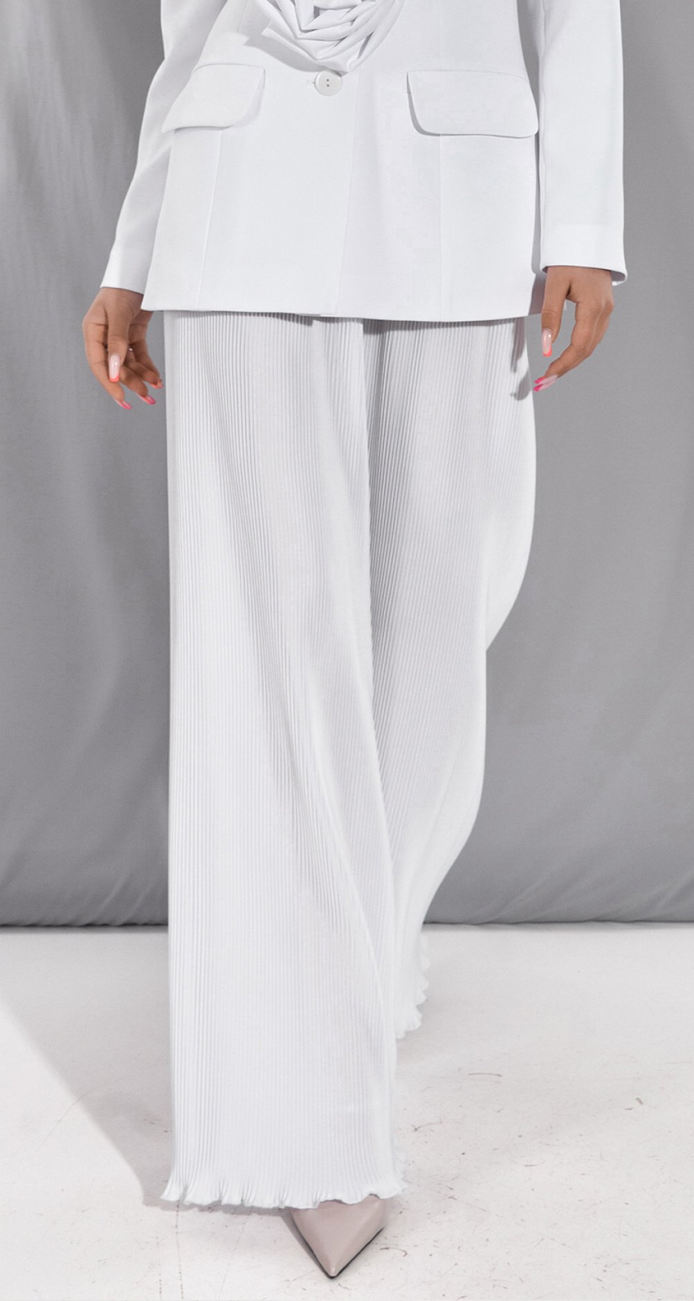 * Exquisite pleated silk: Gives the trousers airiness, sophistication and a noble shine that will effectively shimmer with every movement.