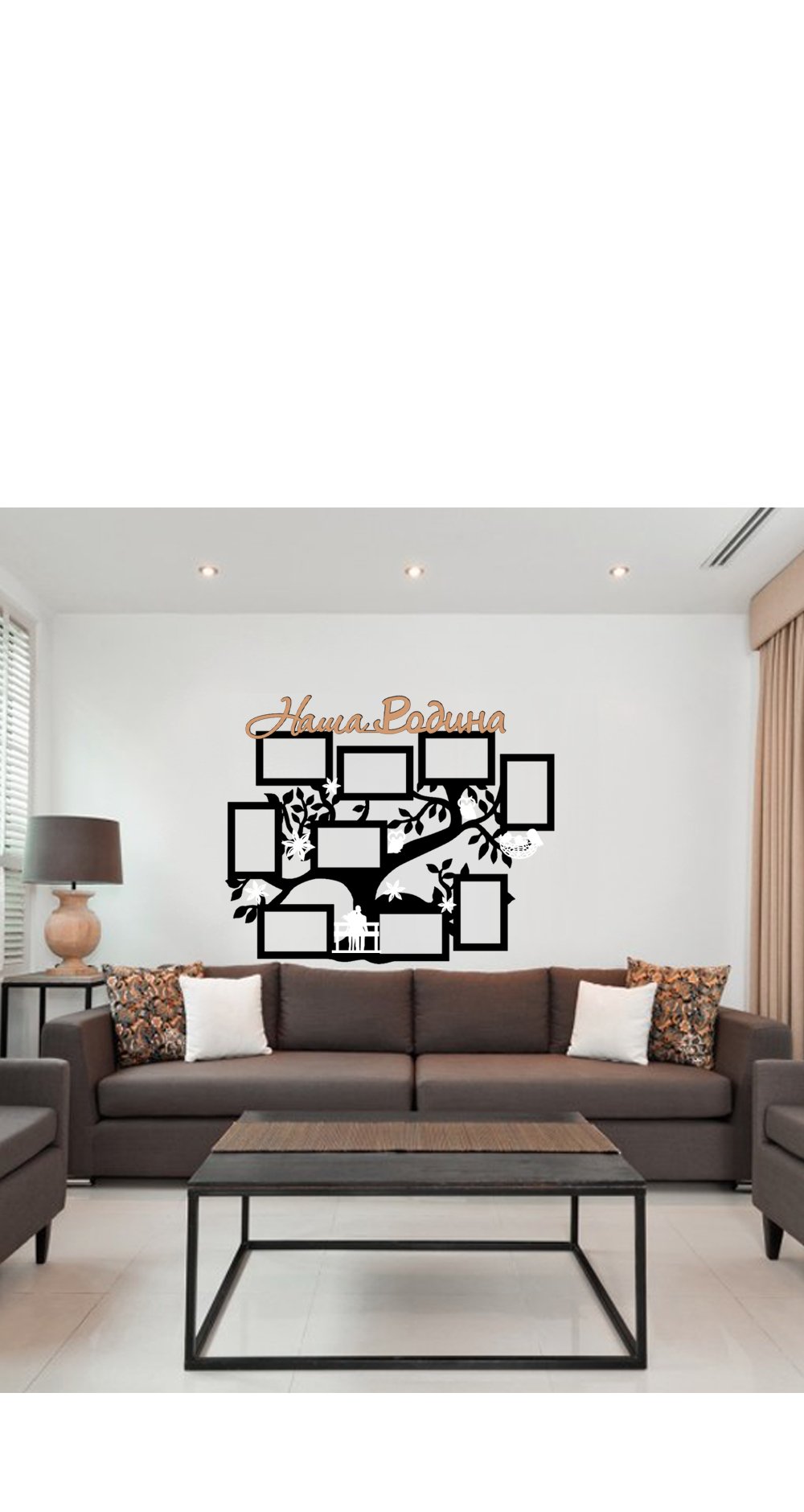 A family tree with photo frames on the wall will be a good touch to complete the renovation, make a housewarming party even more joyful, or refresh an already familiar interior. A decorative panel can be turned into a genealogical photo collage, or you can surround yourself with memorable photographs. The composition will make any interior original: the living room - stylish, the corridor - not boring, the bedroom - cozy. This is a wonderful gift for housewarming, birthday, New Year, wedding or anniversary. The panel is attached to the wall using liquid nails or hot glue (not included). Unlike cheap stickers, this is a full-fledged high-quality decor that will last for many years. The family composition can be regularly updated by changing photos.