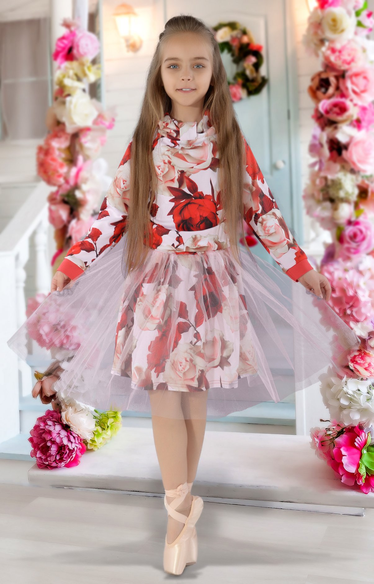 Mesh skirt! Bright print! Oversized sweatshirt!