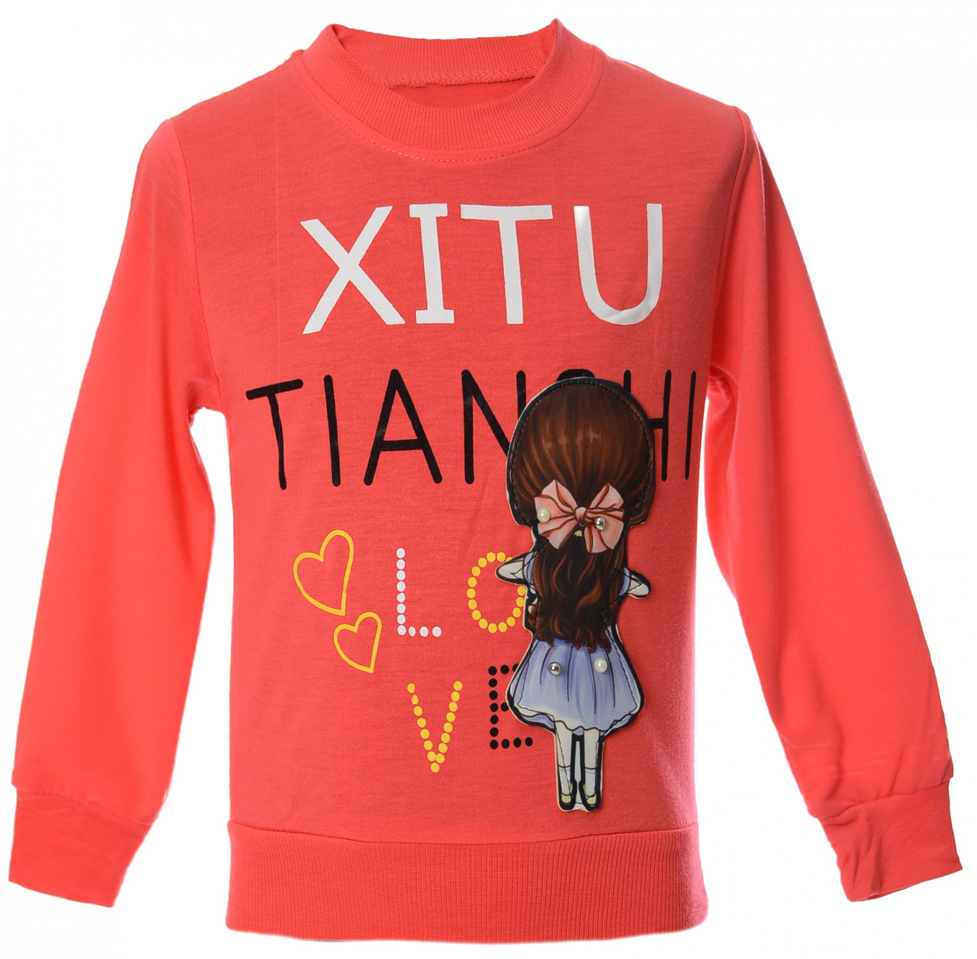 Модный , теплый батник для девочки с аппликацией впереди. Батник из приятной и мягкой ткани.
