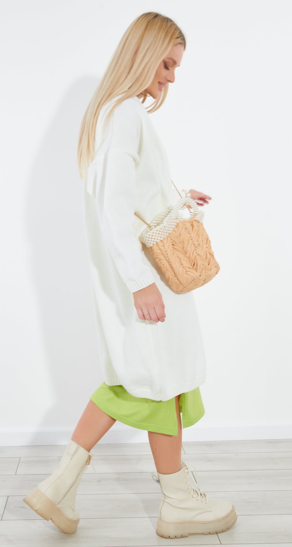 For this cardigan, we victoriously wove the soft yarn of Turecchini's weaving!