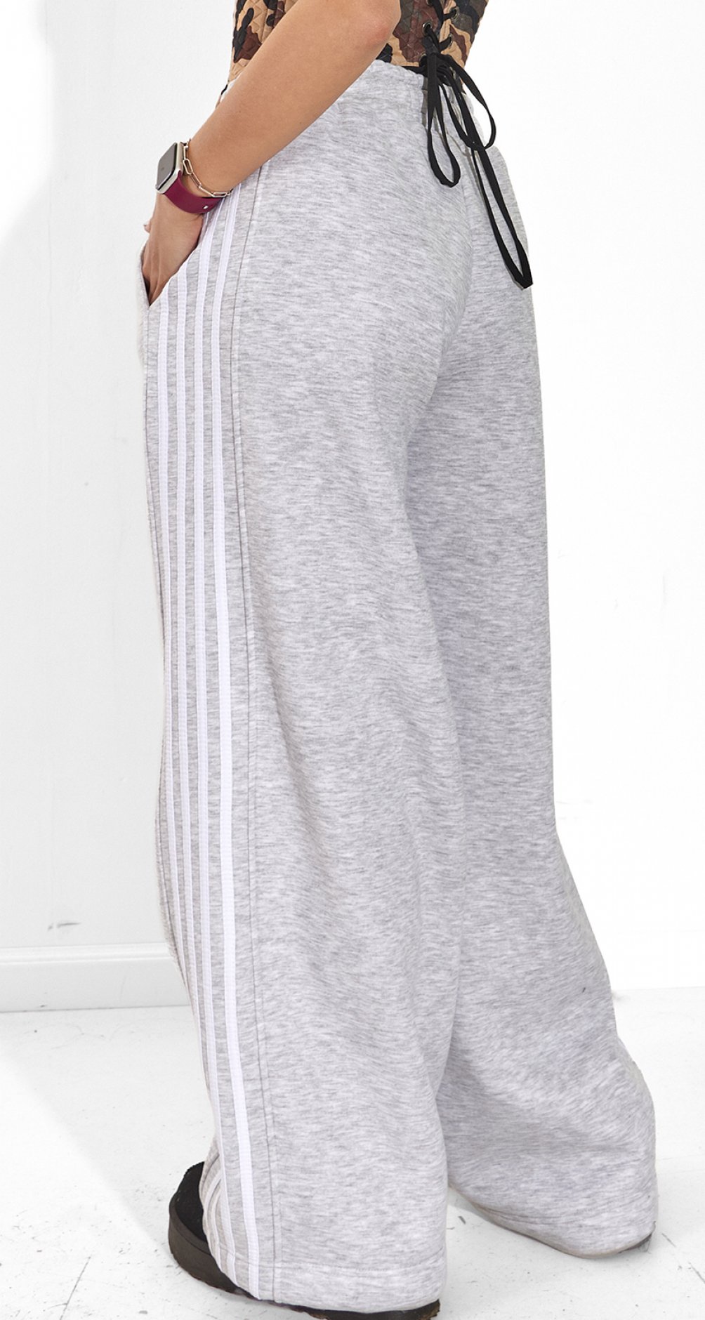 Трансформація низу: Внизу є фіксатори. Залишай їх вільними для розслабленого образу з широкими штанинами або затягуй – і в тебе в руках (точніше, на ногах) стильні джоггери.