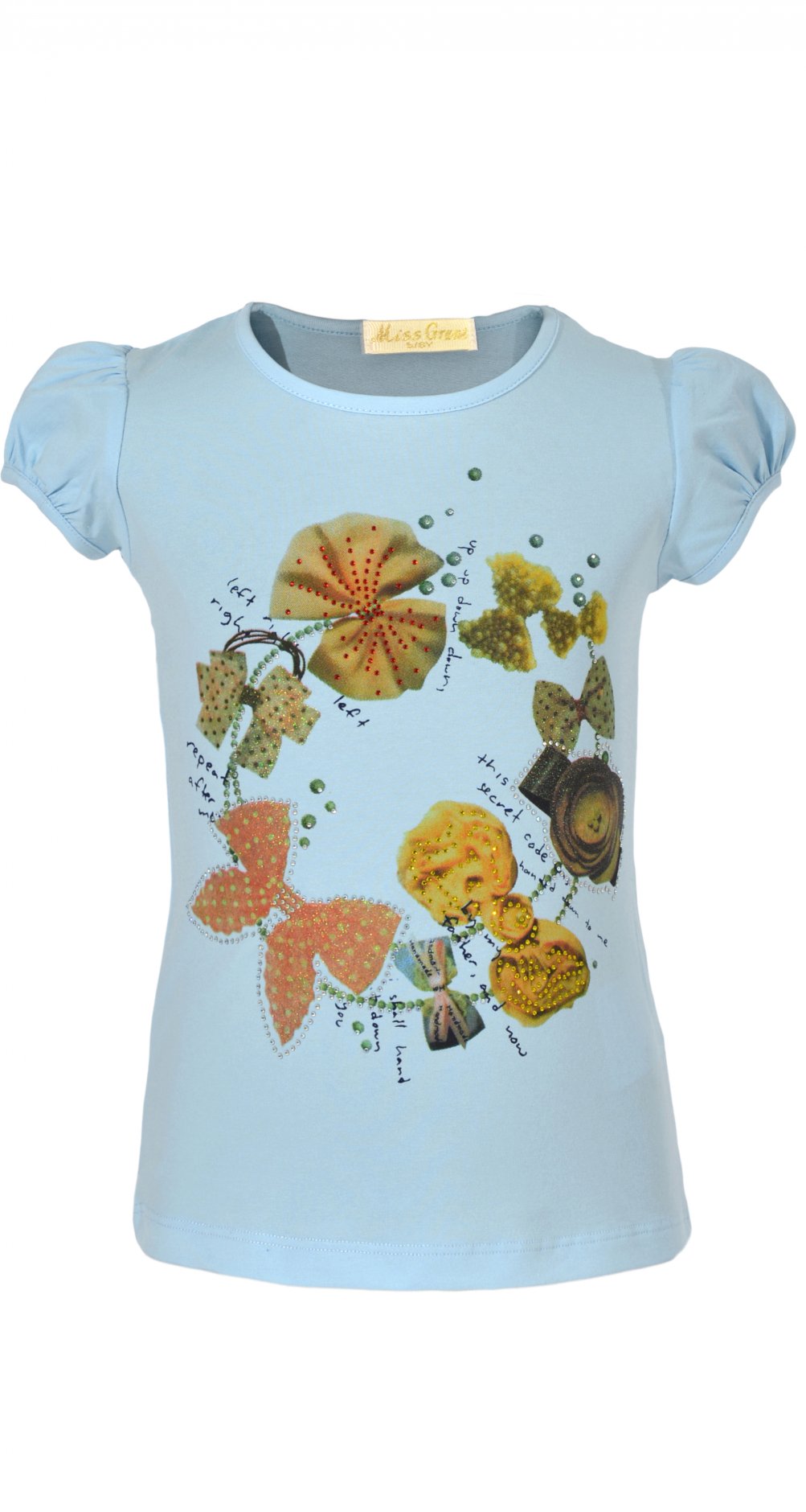 Дитяча футболка з рослинним принтом та стразами.