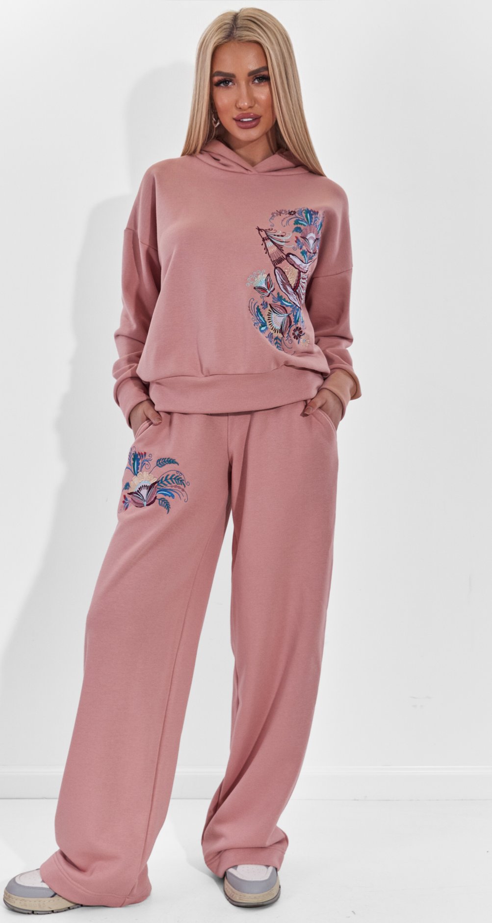 Цей костюм – втілення комфорту та стилю. Вільні штани палаццо не сковують рухів, даруючи відчуття легкості та невимушеності, а вишукана вишивка надає образу неповторного шарму та індивідуальності.