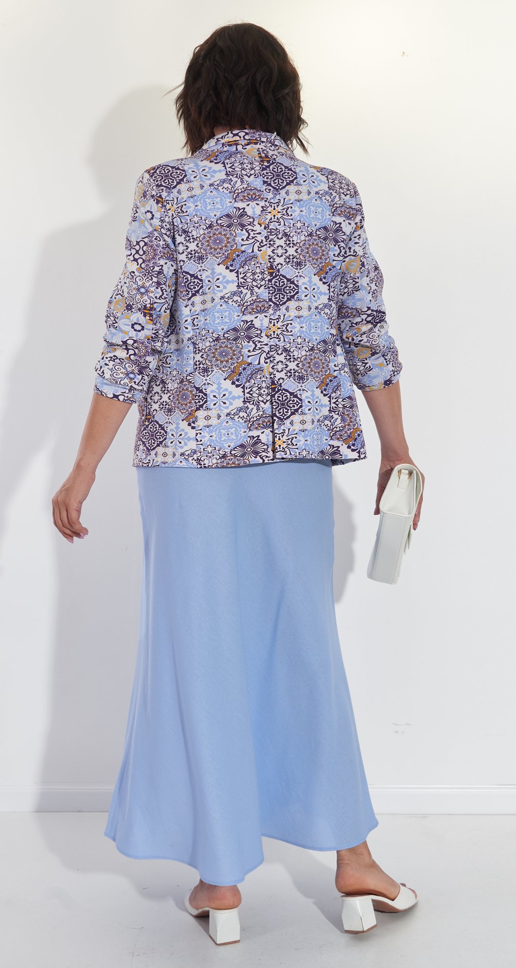 Він виконаний із тканини з гарним принтом, у блакитних відтінках!