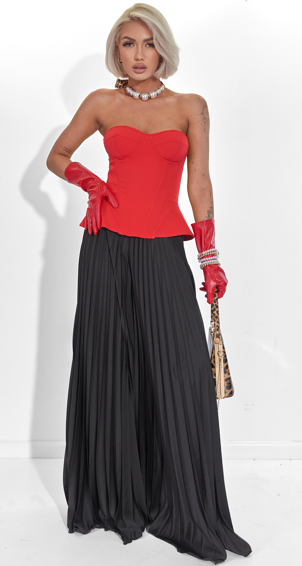 Цей комплект – втілення сучасної розкоші та жіночності. Поєднання структурного корсета, який тримає форму, і пліссе, що струмує, створює той самий «дорогий» силует, який виглядає доречно і на червоній доріжці, і на вечері в ресторані.