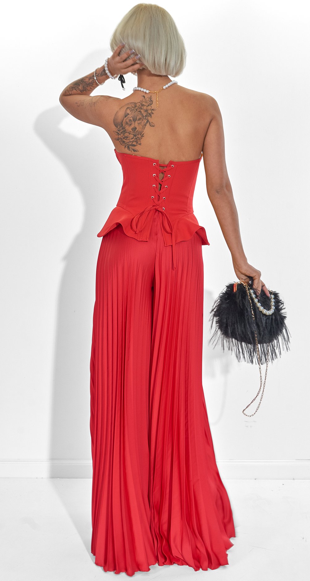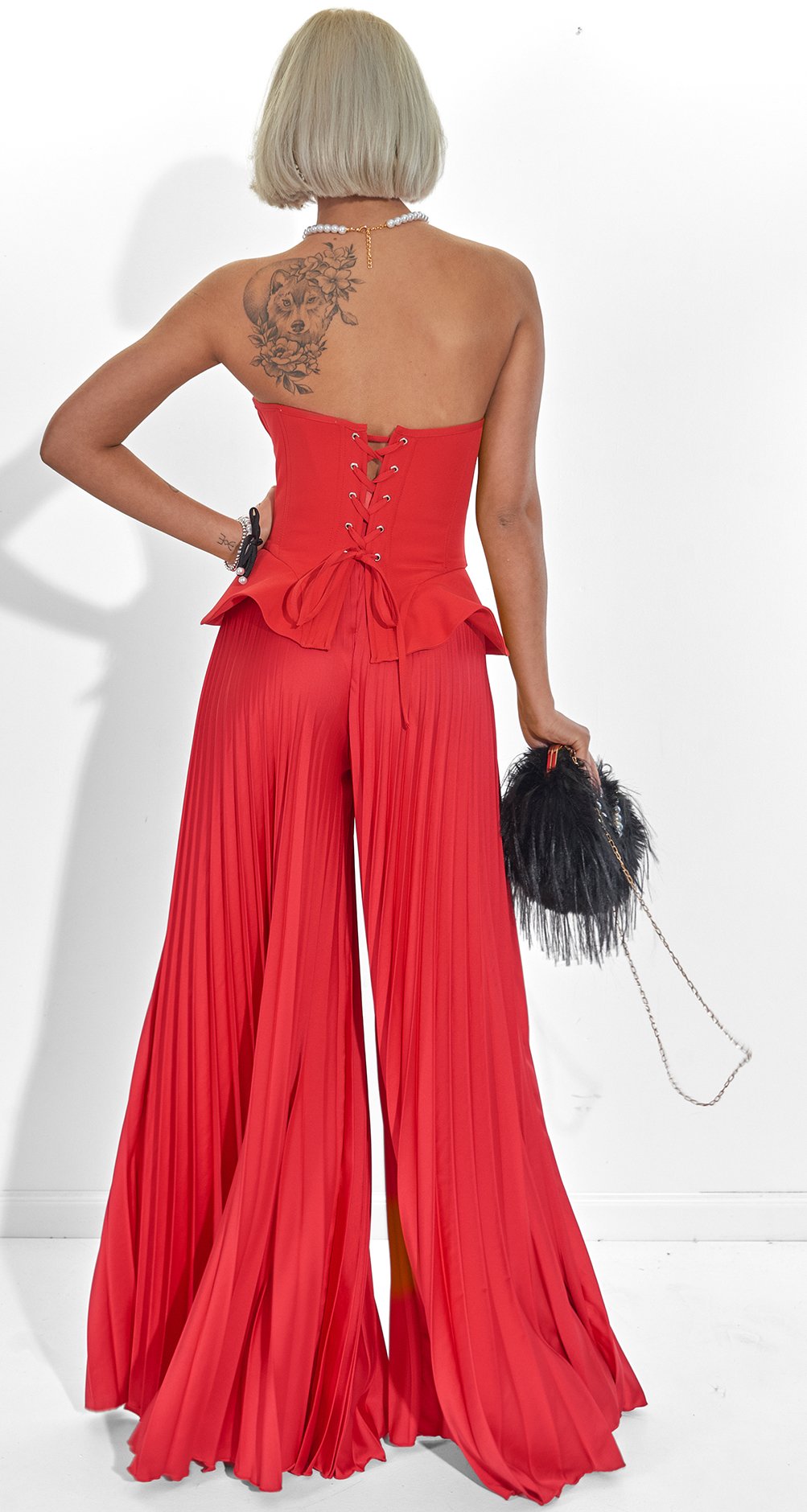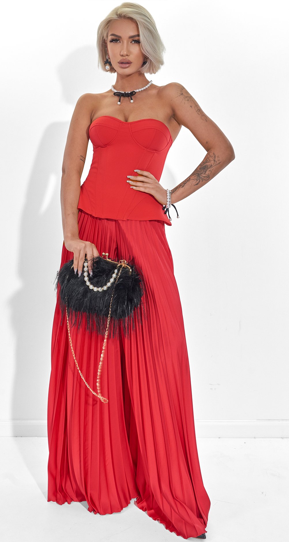 Цей комплект – втілення сучасної розкоші та жіночності. Поєднання структурного корсета, який тримає форму, і пліссе, що струмує, створює той самий «дорогий» силует, який виглядає доречно і на червоній доріжці, і на вечері в ресторані.