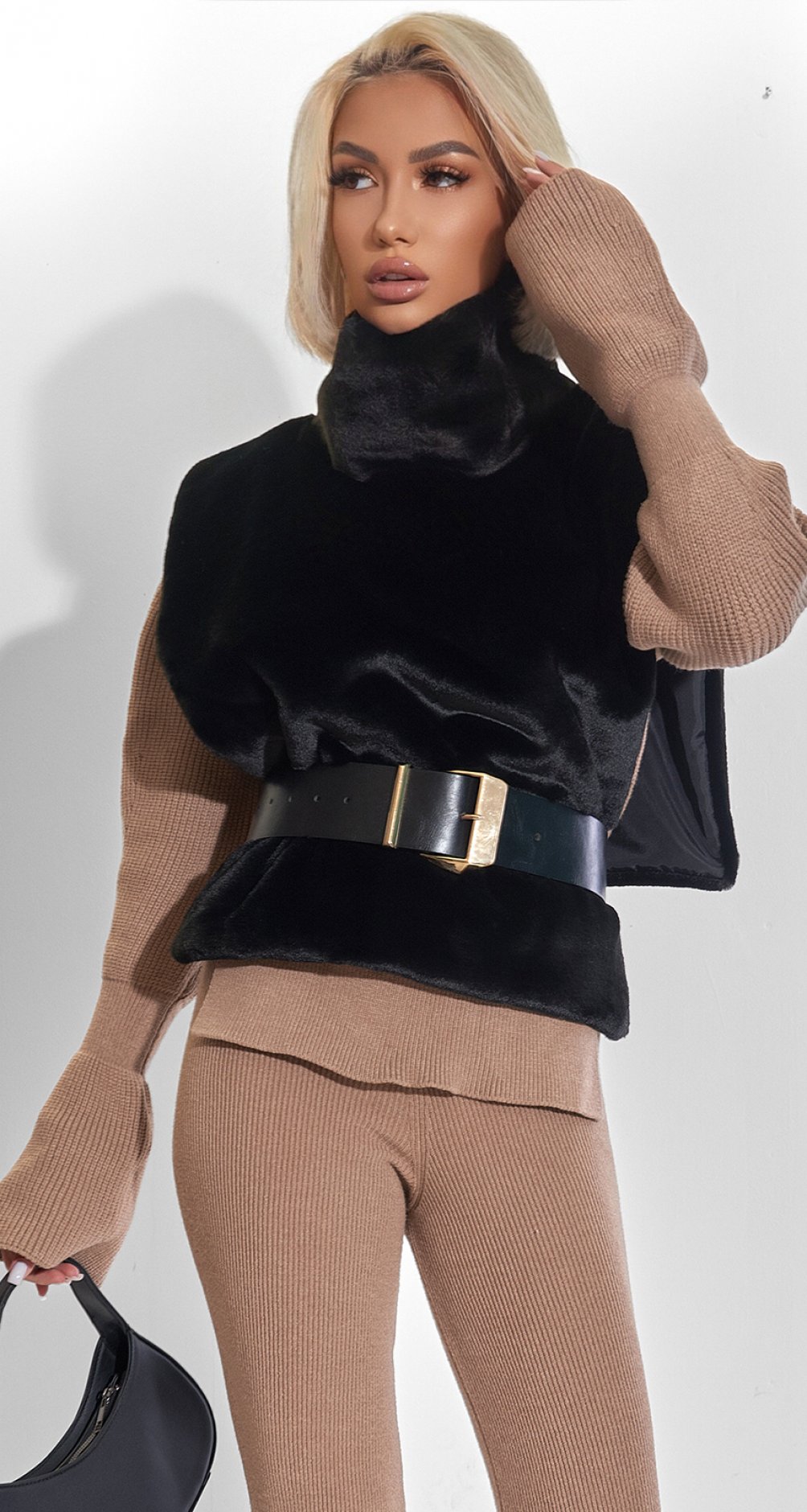 З шкіряною курткою: Хутро і шкіра - класика. Манішка додасть брутальному образу м'якості та жіночності.
