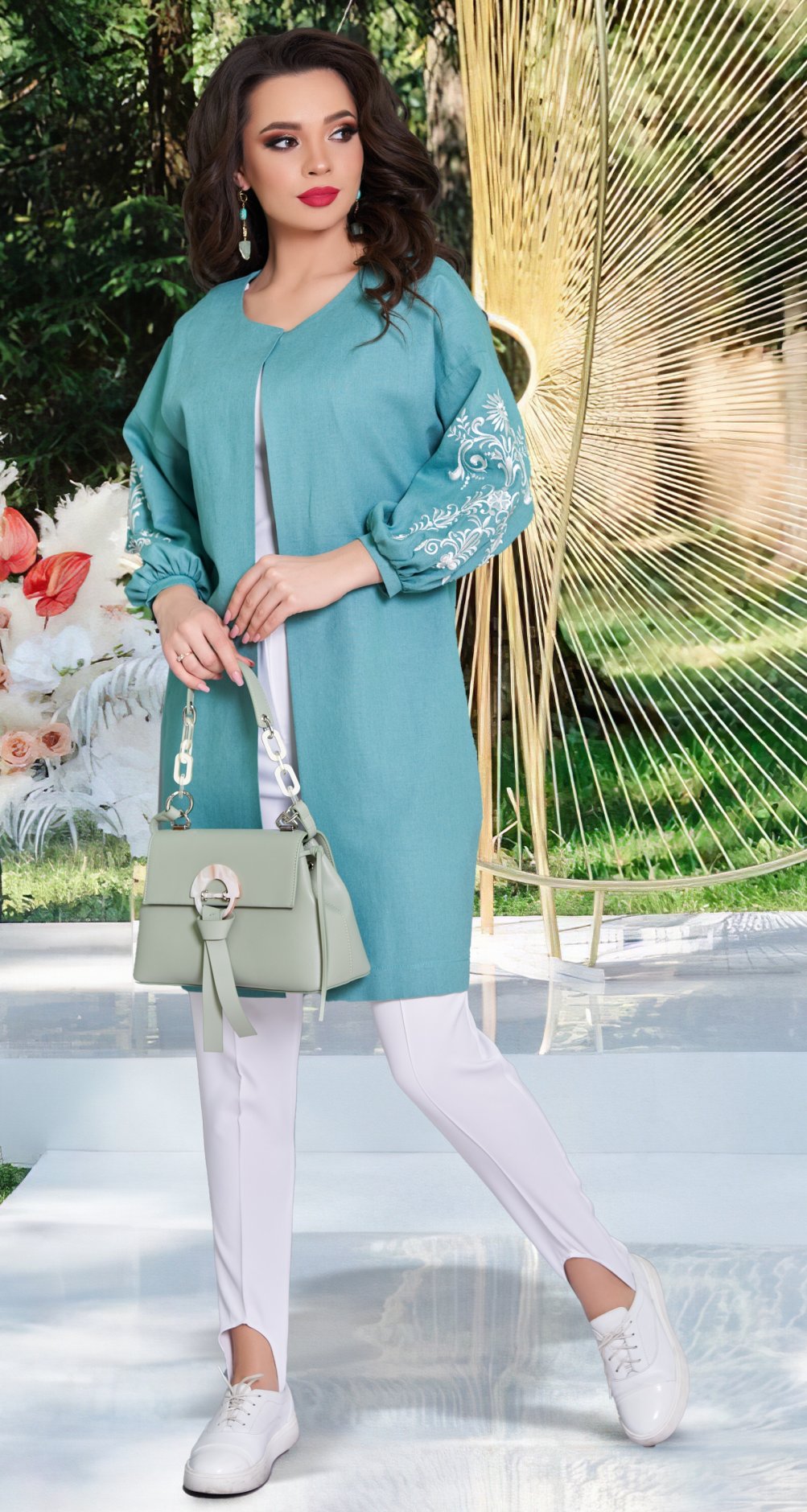 Спущена лінія плеча переходить у гарний рукав із вишивкою!