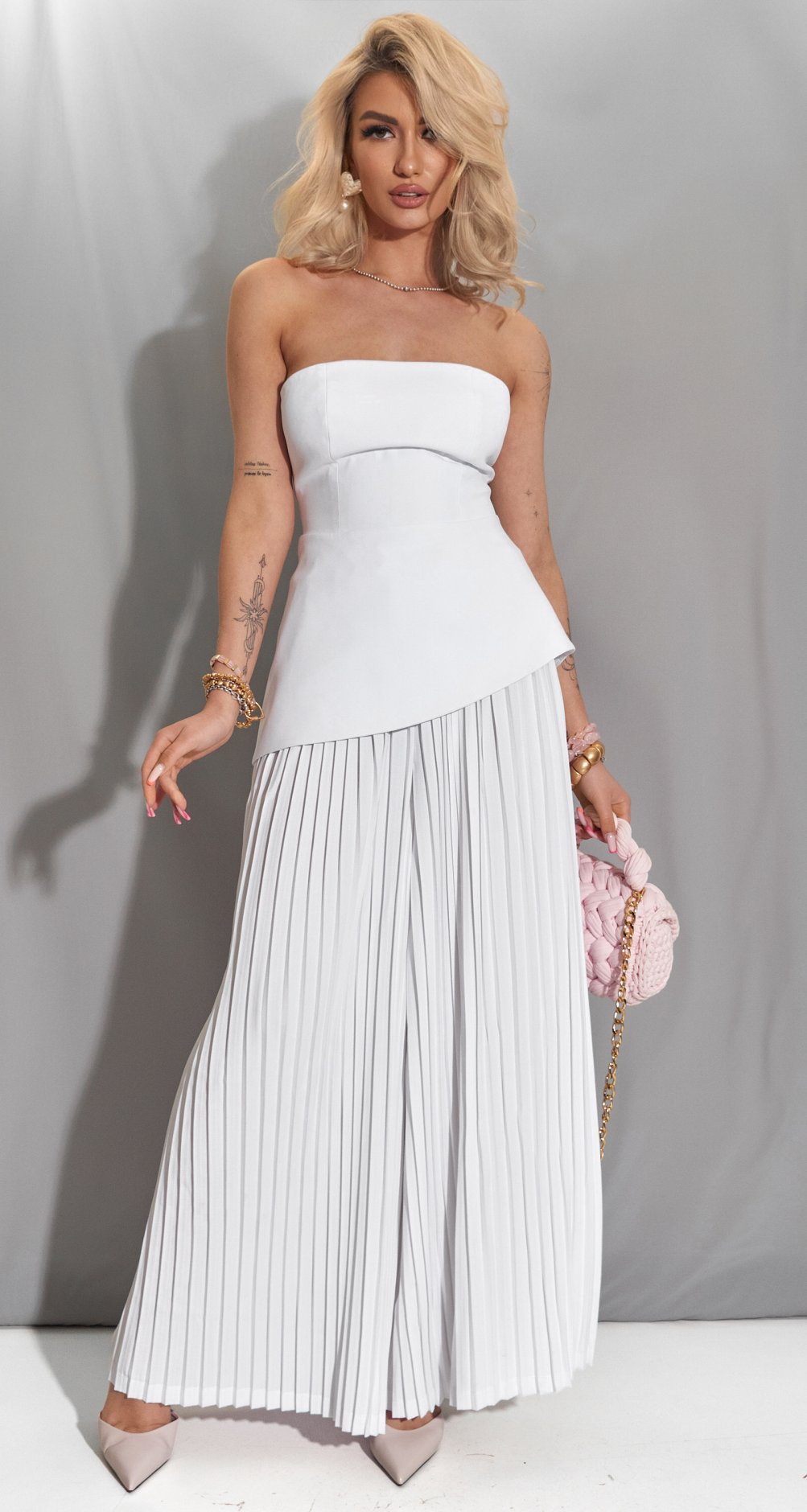 Створіть свій неповторний образ! Цей стильний комплект із корсету та плісованої спідниці-брюк стане перлиною вашого гардеробу. Універсальний білий колір дозволить вам експериментувати з аксесуарами та створювати різноманітні образи – від вечірнього виходу до романтичної зустрічі. Не пропустіть можливість відчути себе королевою!