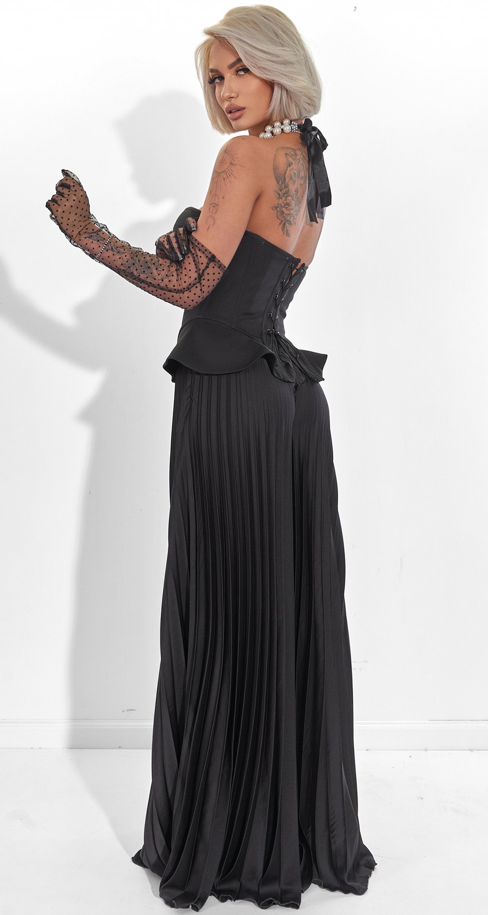 ​ Вау-ефект 360°: Поки всі захоплюються вашим декольте, справжня магія відбувається ззаду. Спинка-метелик підкреслює витонченість вашої постави і крихкість плечей.