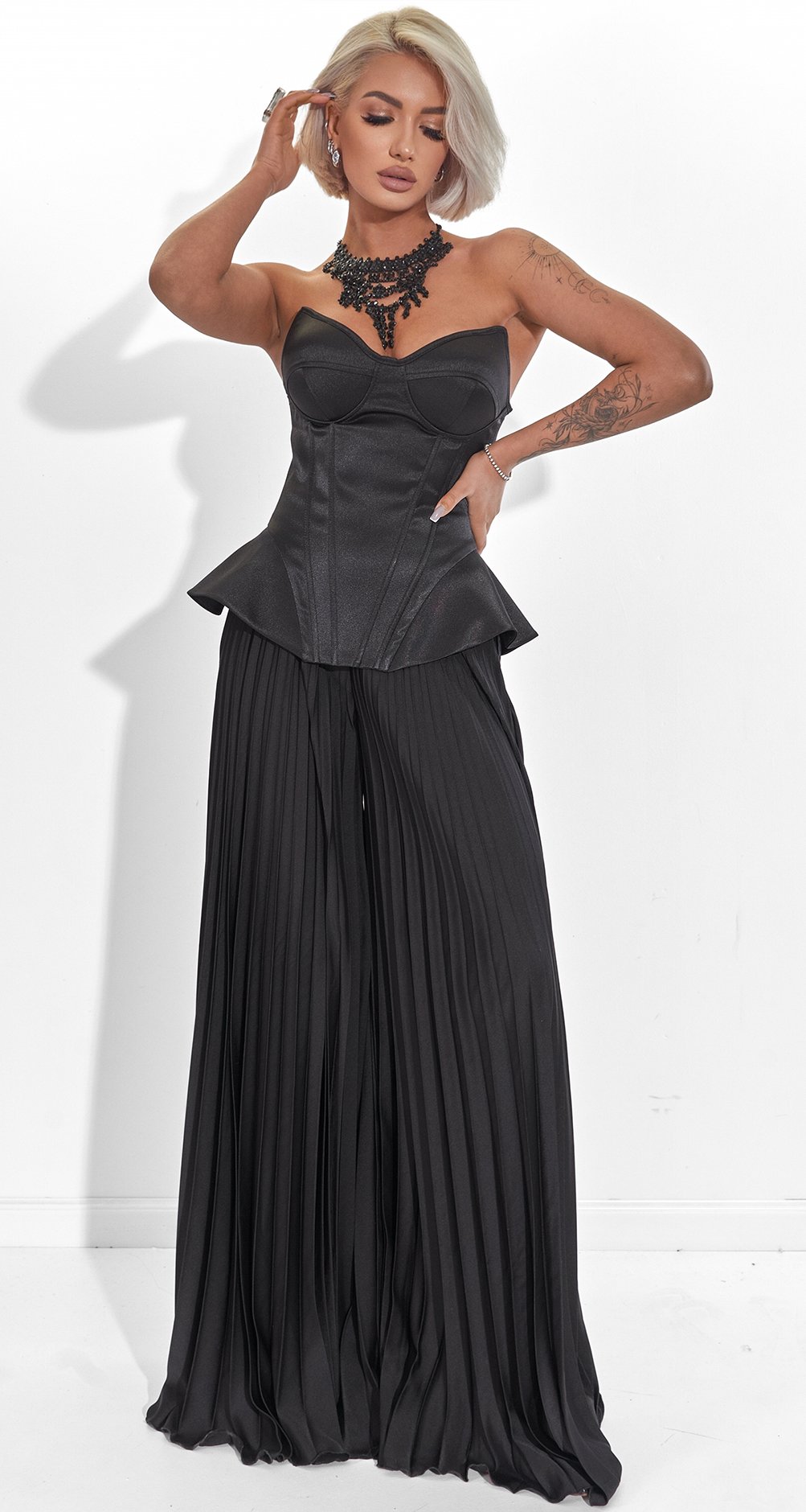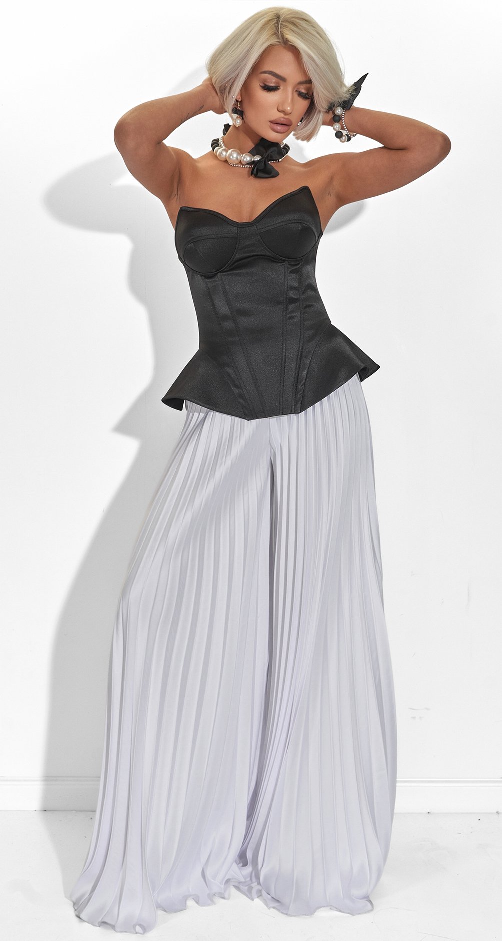 Сумісно з штанами пліссе або спідницею для вишуканого вечірнього виходу.