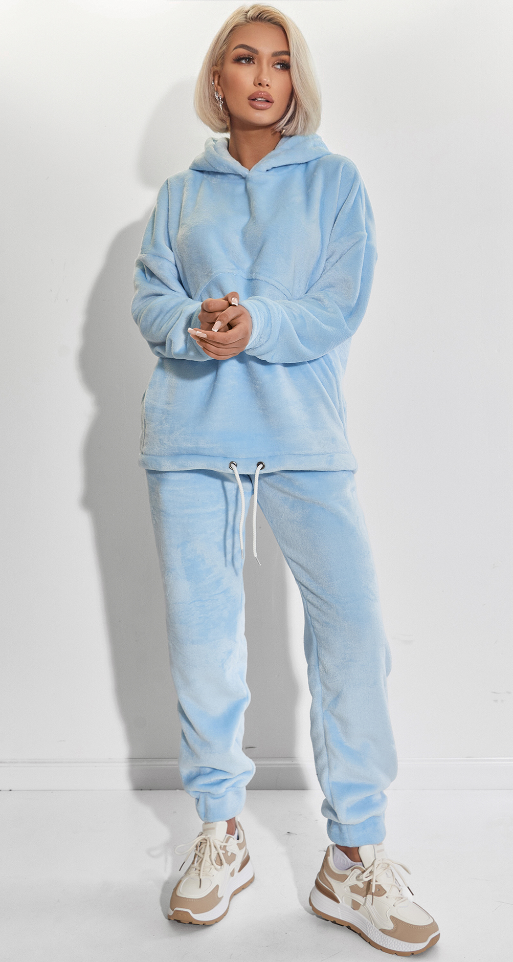 Стиль легко: Ніжний блакитний колір освіжає обличчя навіть без макіяжу, а фактура тканини виглядає дорого і доглянуто.