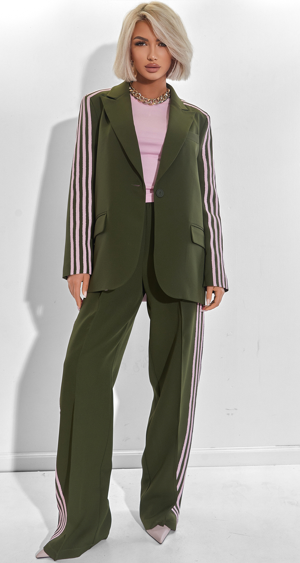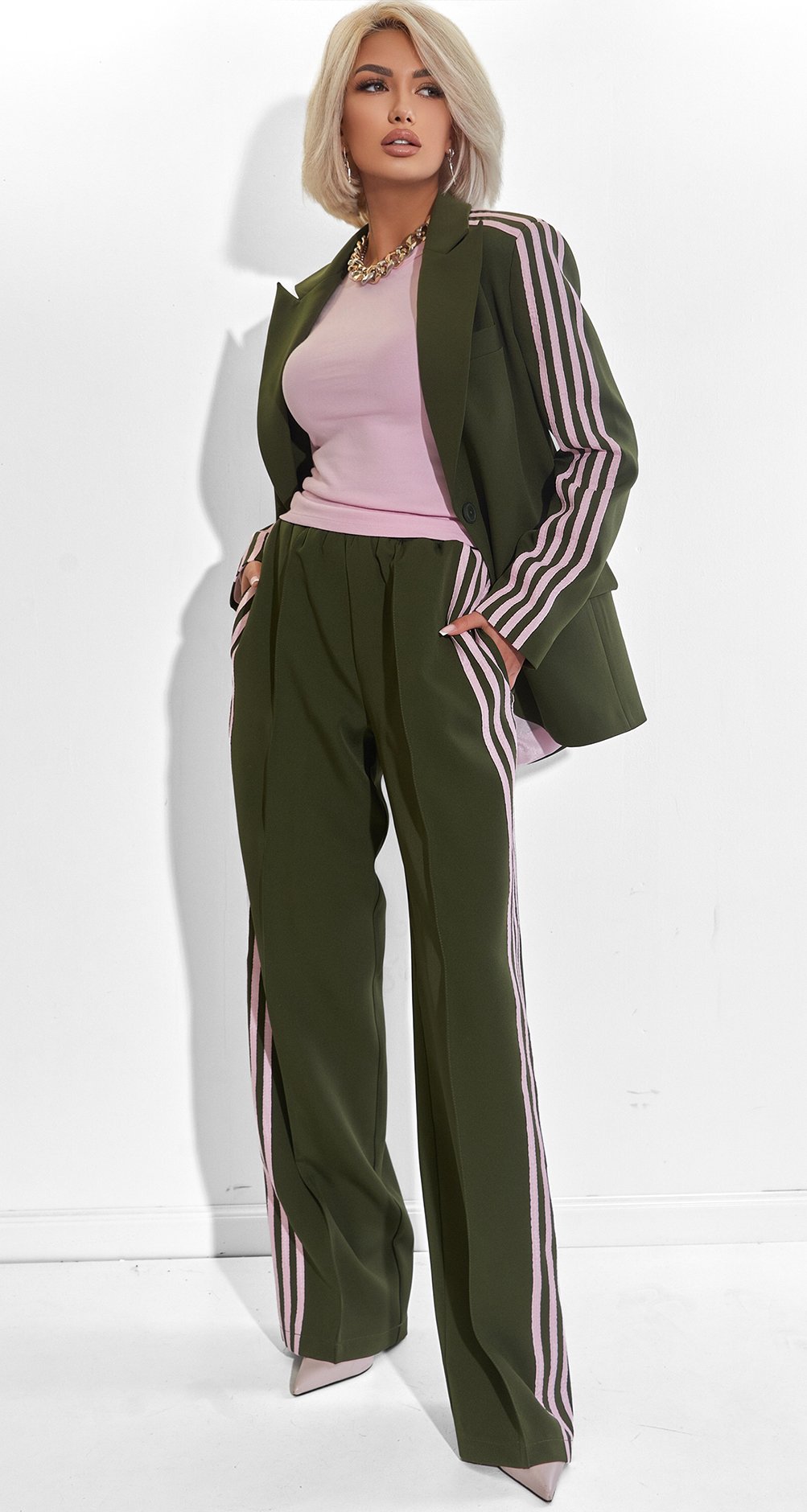 Акцентні лампаси Контрастні бічні лінії – це не просто тренд. Вони візуально витягують силует, надаючи вам зростання та витонченості.